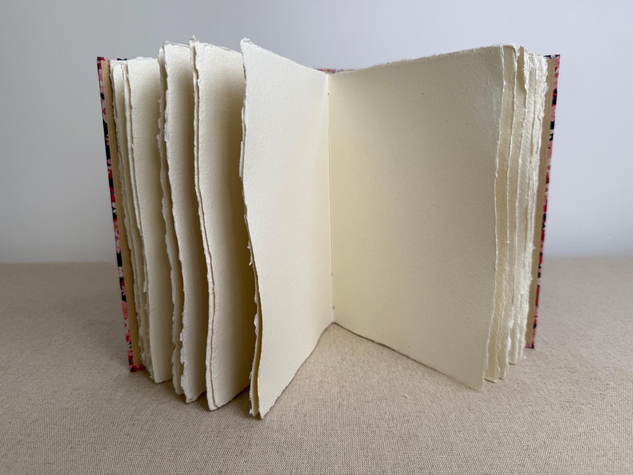Carnet artisanal avec un magnifique papier aquarelle Khadi fait à la main en Inde. Papier 100 % coton, 320 g/m2, de surface moyennement rugueuse, parfait pour la peinture aquarelle mais qui convient aussi pour les techniques sèches ou d’autres techniques humides.