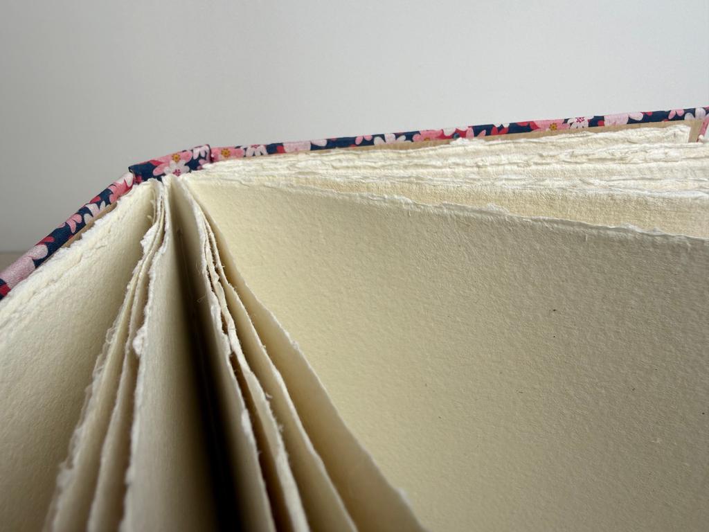 Reliure artisanale cousue avec du fil en lin utilisé traditionnellement pour la reliure, très résistant. Chaque carnet est un exemplaire unique.