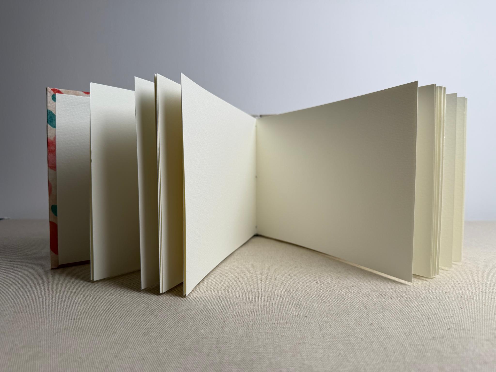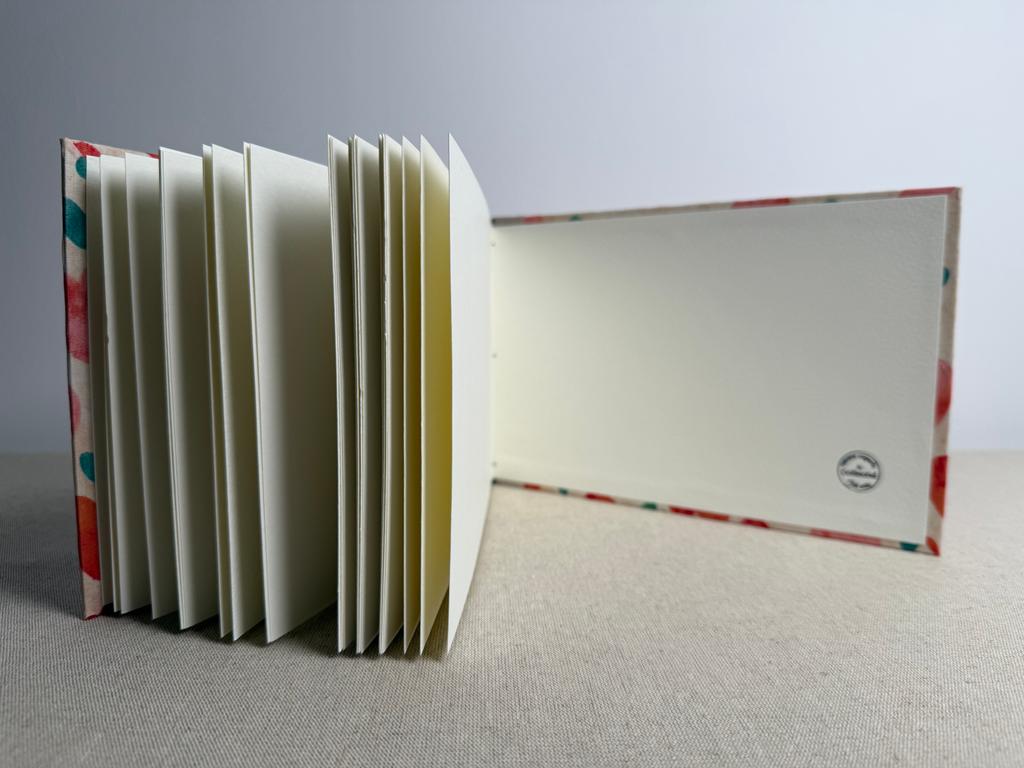 Carnet artisanal contenant un beau papier à dessin blanc, à la surface texturée très épaisse 220 g/m2 remarquable pour la peinture aquarelle.