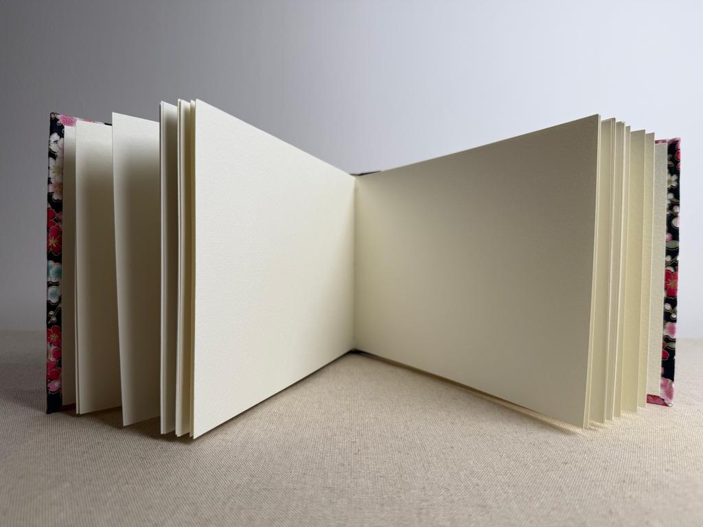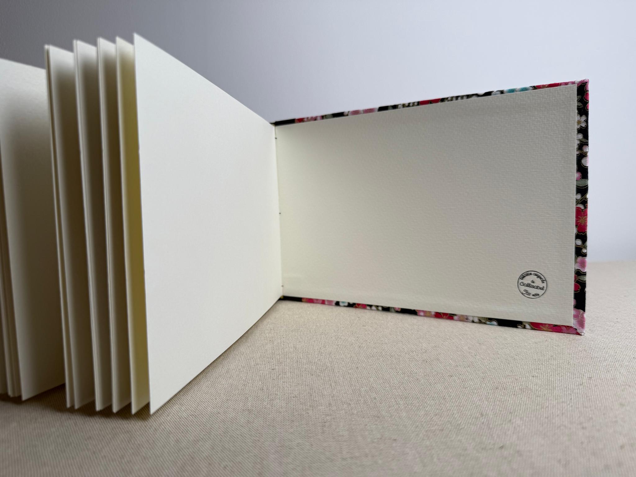 Carnet artisanal contenant un beau papier à dessin blanc, à la surface texturée très épaisse 220 g/m2 remarquable pour la peinture aquarelle.
