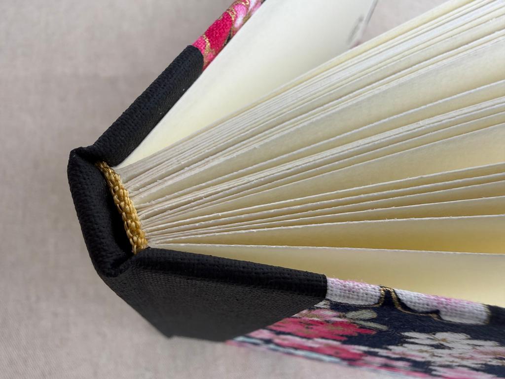 Reliure artisanale cousue avec du fil en lin utilisé traditionnellement pour la reliure, très résistant. Chaque carnet est un exemplaire unique.