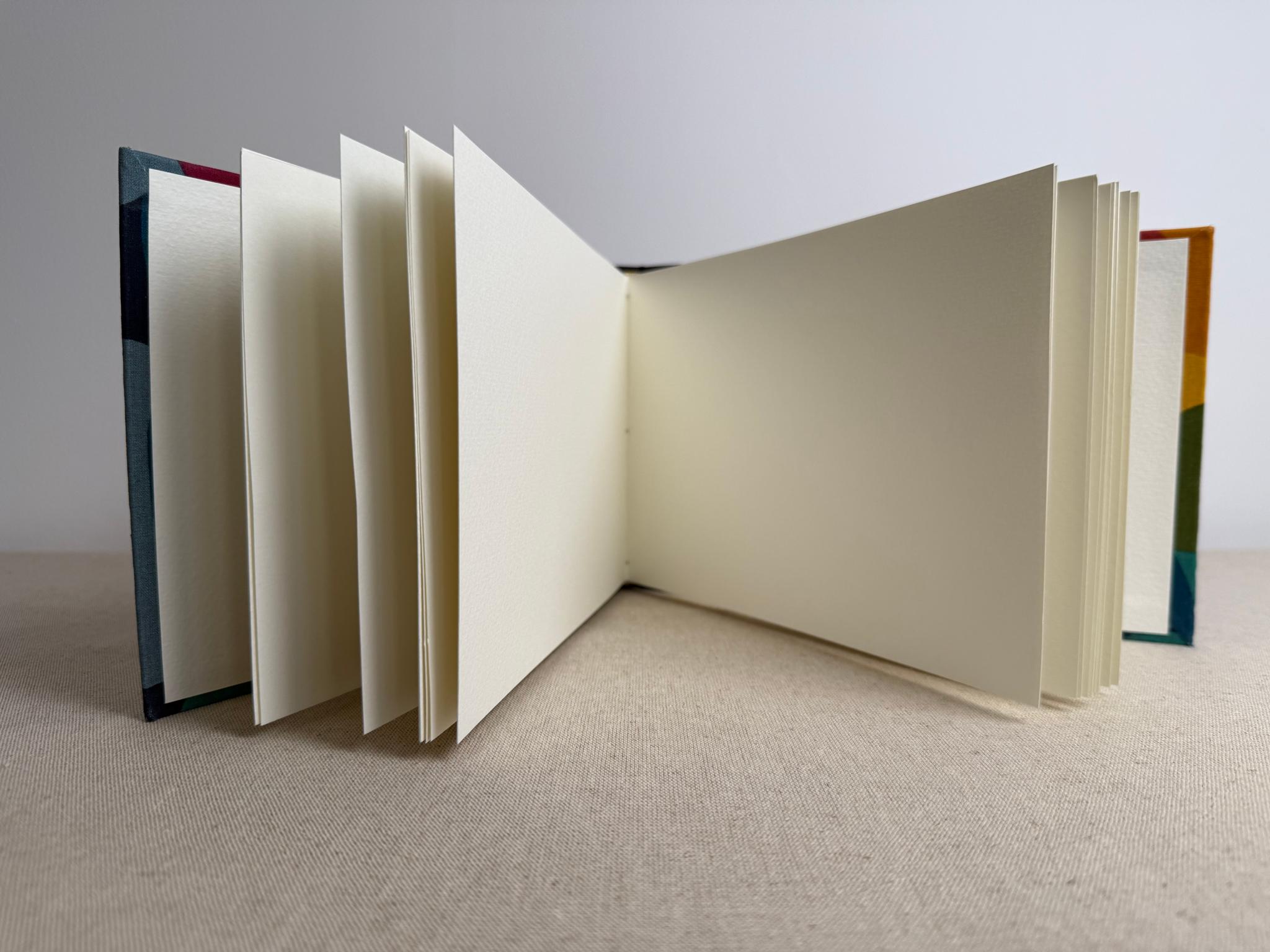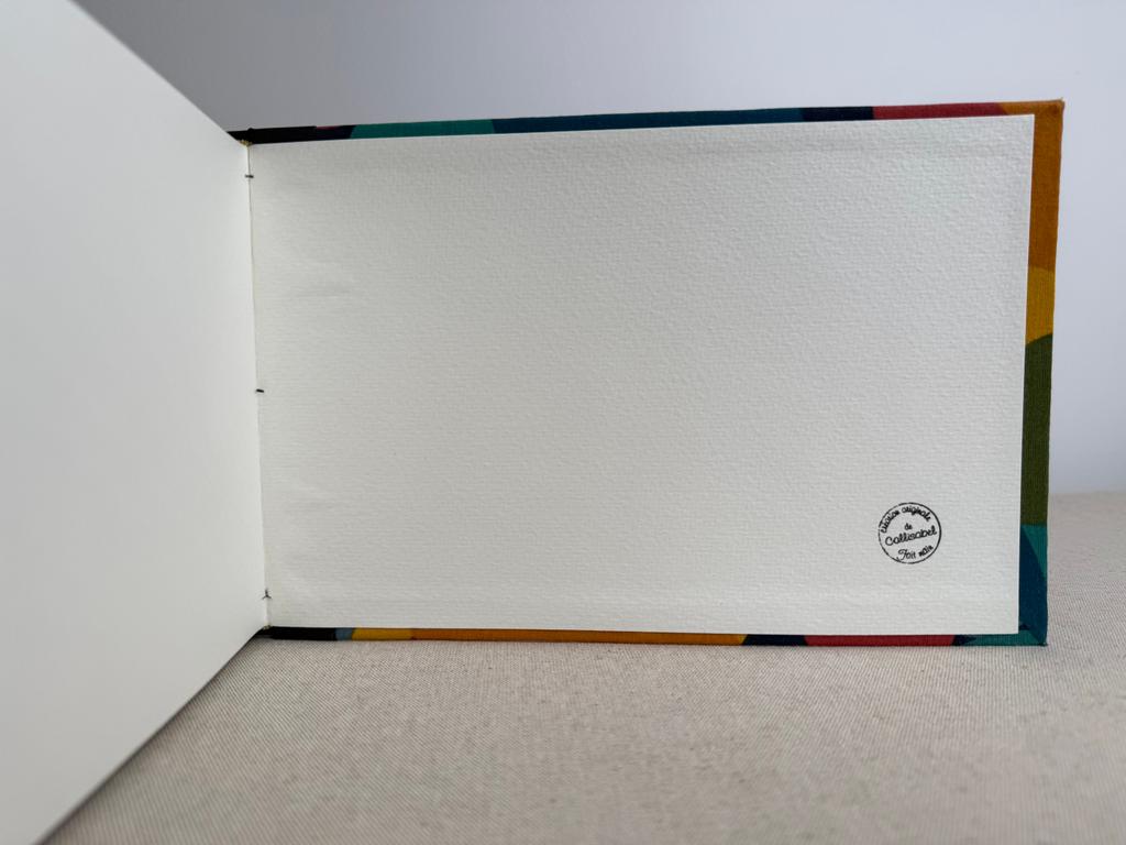 Carnet artisanal contenant un beau papier à dessin blanc, à la surface texturée très épaisse 220 g/m2 remarquable pour la peinture aquarelle.