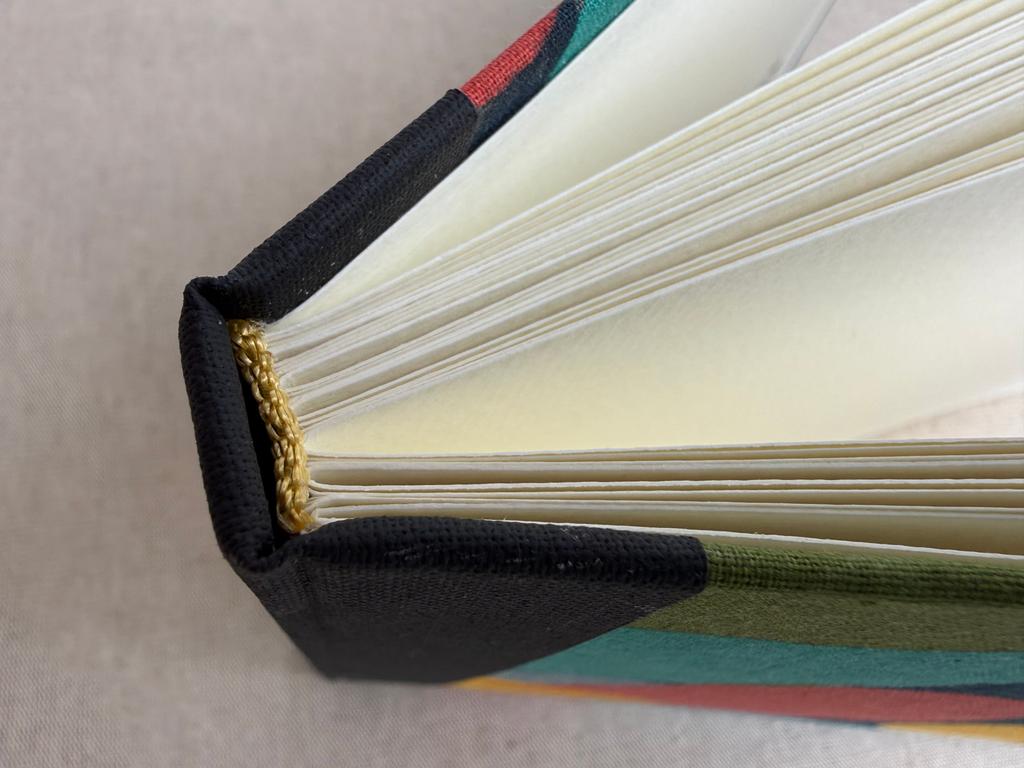 Reliure artisanale cousue avec du fil en lin utilisé traditionnellement pour la reliure, très résistant. Chaque carnet est un exemplaire unique.