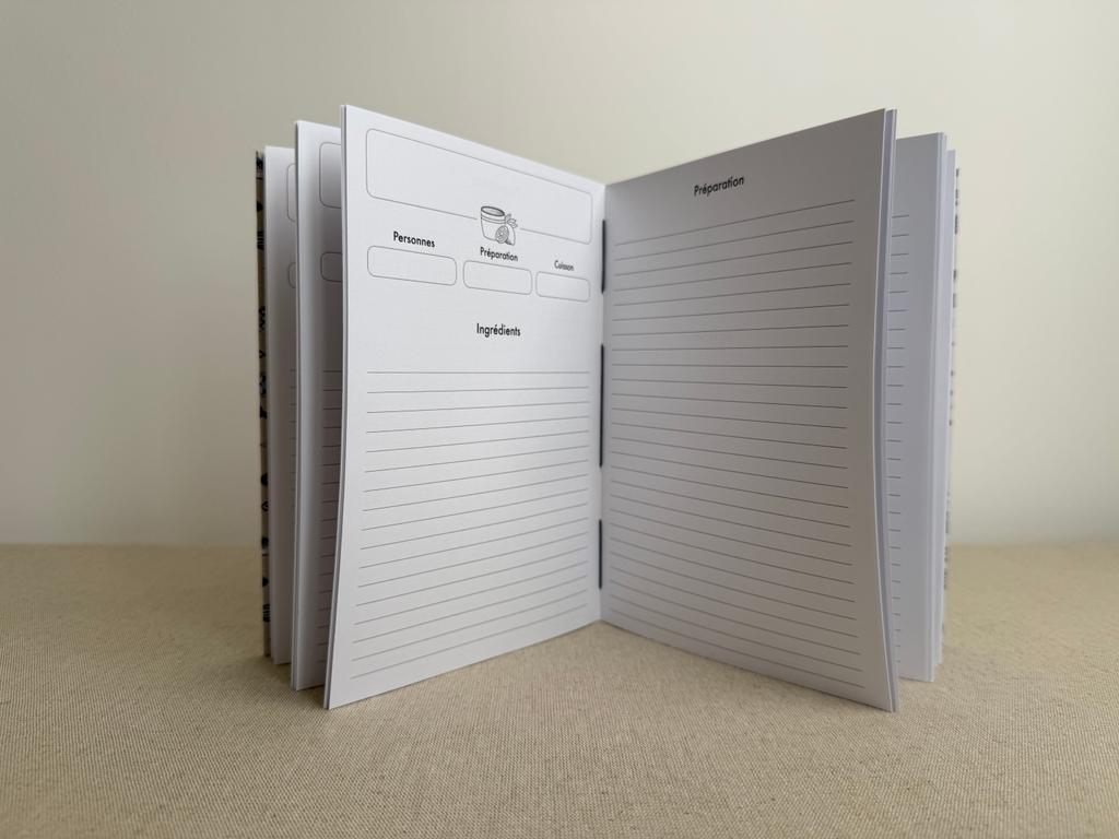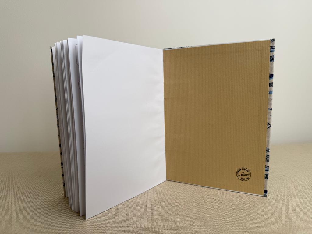 Carnet artisanal avec un beau papier à lignes, 120 g/m2, papier lisse pour faciliter l’écriture, de couleur blanc chaud.