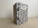 Chaque carnet est soigneusement emballé dans un papier de soie blanc avec une étiquette de présentation du carnet et une carte de remerciement. Sur demande, emballage cadeau offert en papier kraft marron avec un motif à pois blancs.