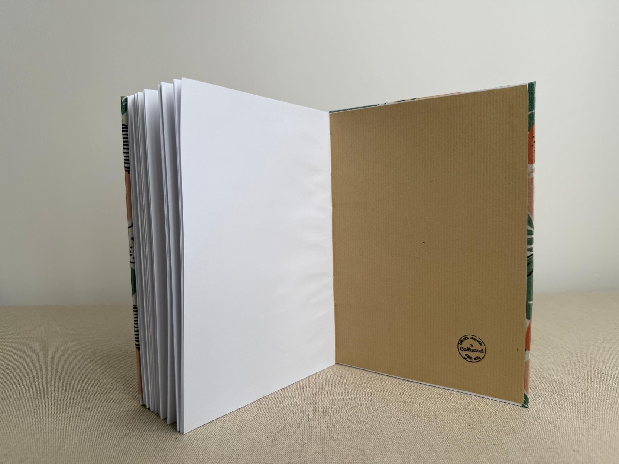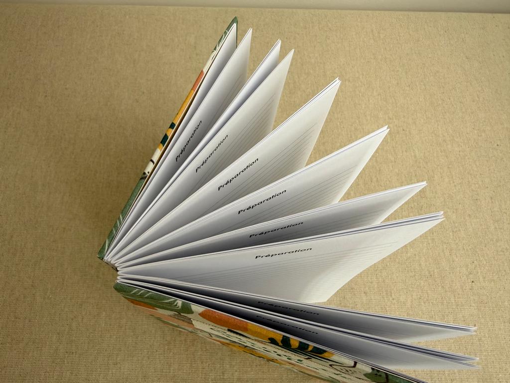 Carnet artisanal avec un beau papier à lignes, 120 g/m2, papier lisse pour faciliter l’écriture, de couleur blanc chaud.