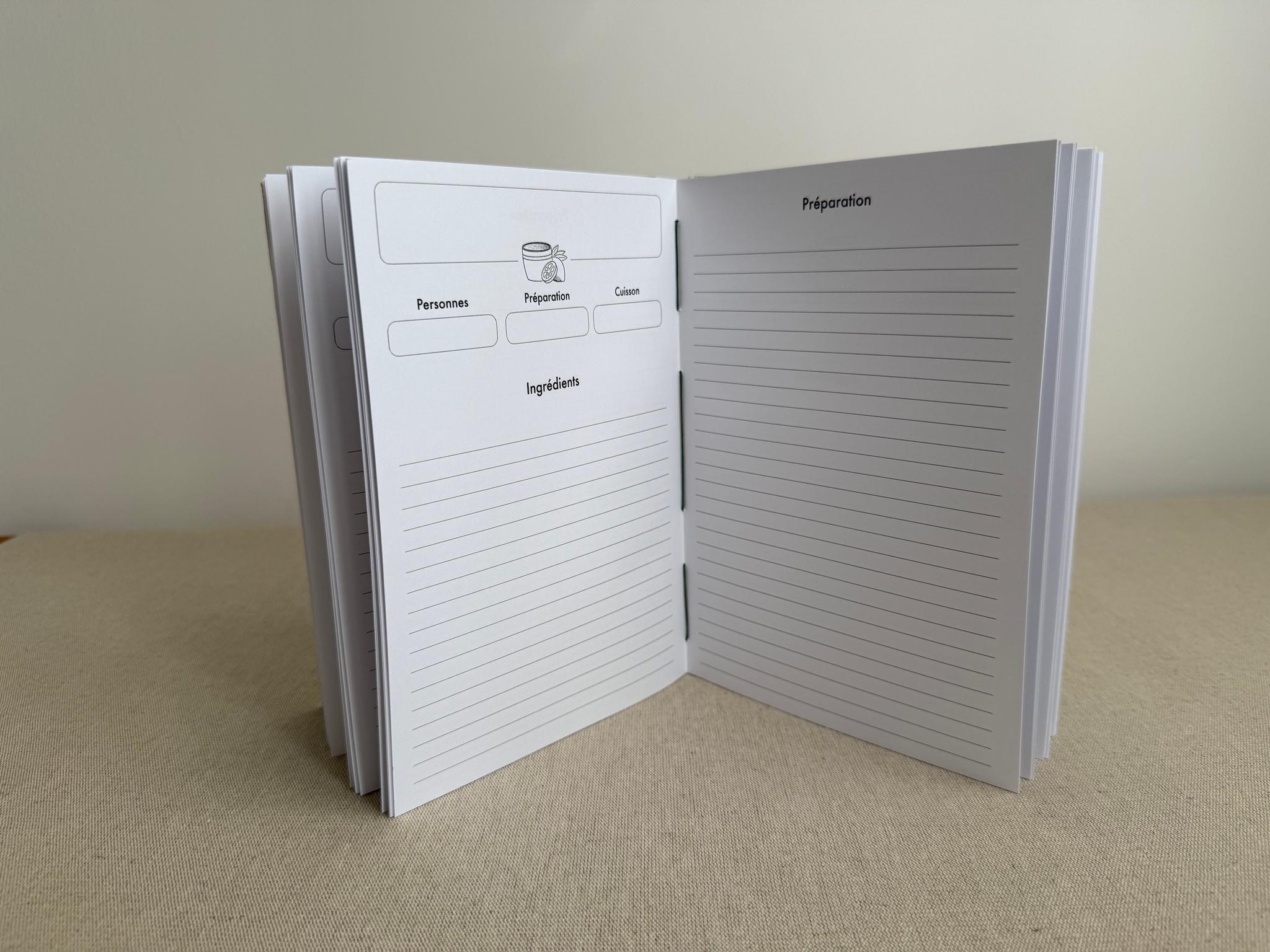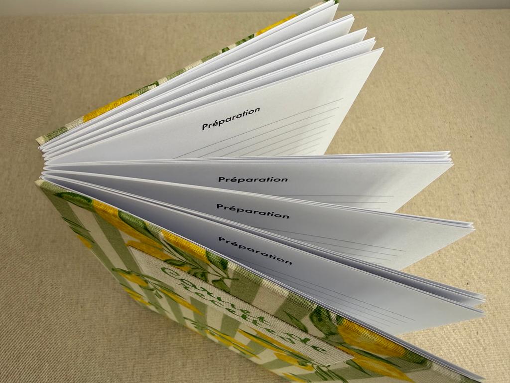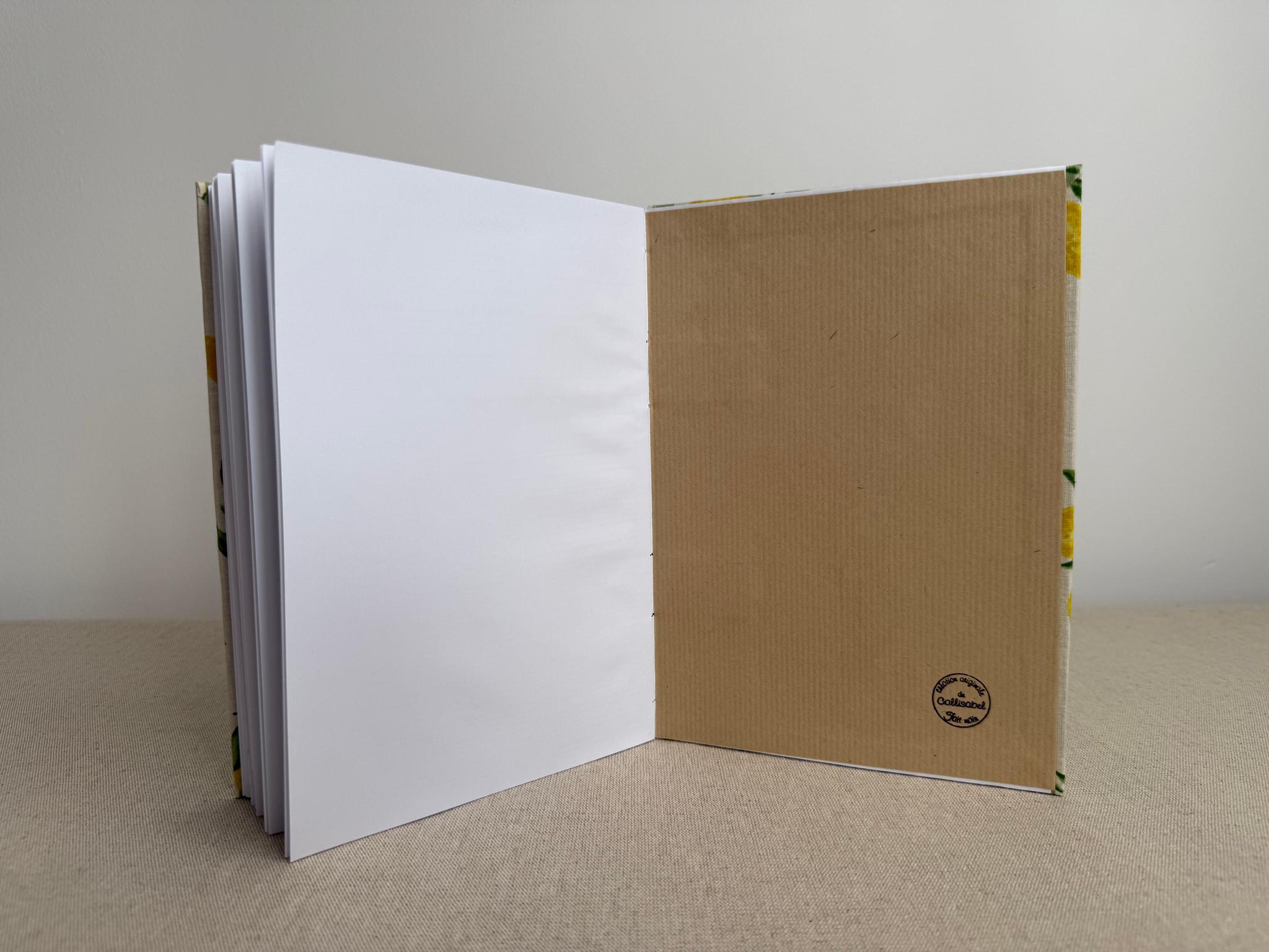Carnet artisanal avec un beau papier à lignes, 120 g/m2, papier lisse pour faciliter l’écriture, de couleur blanc chaud.