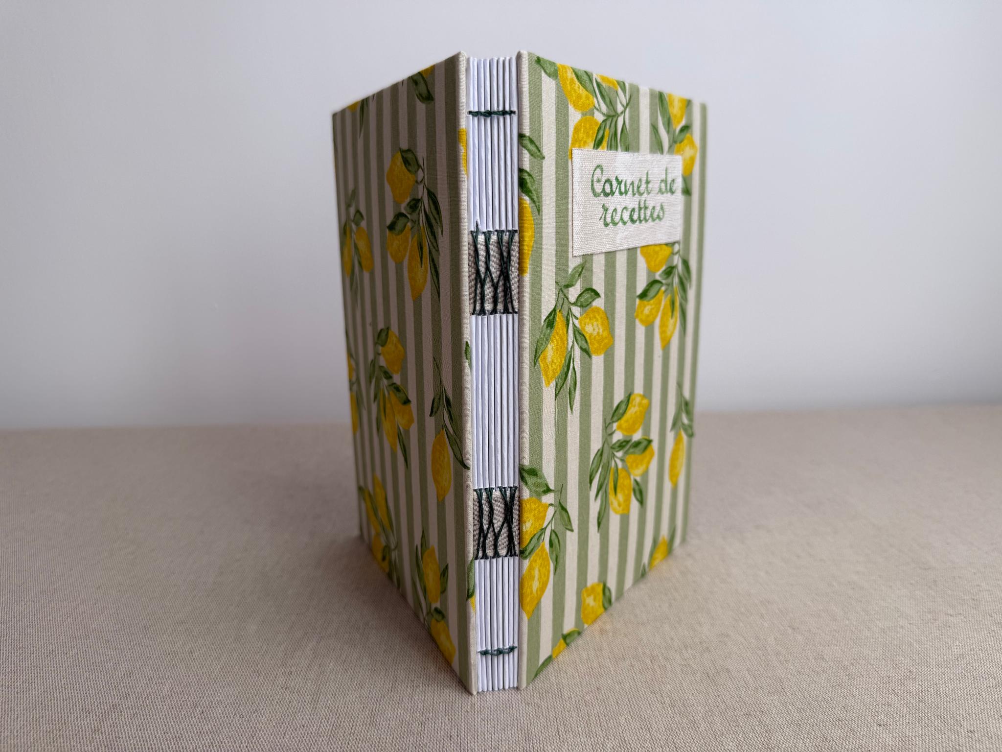Reliure artisanale cousue avec du fil en lin utilisé traditionnellement pour la reliure, très résistant. Chaque carnet est un exemplaire unique.