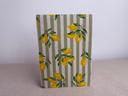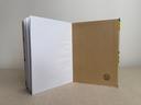 Chaque carnet est soigneusement emballé dans un papier de soie blanc avec une étiquette de présentation du carnet et une carte de remerciement. Sur demande, emballage cadeau offert en papier kraft marron avec un motif à pois blancs.