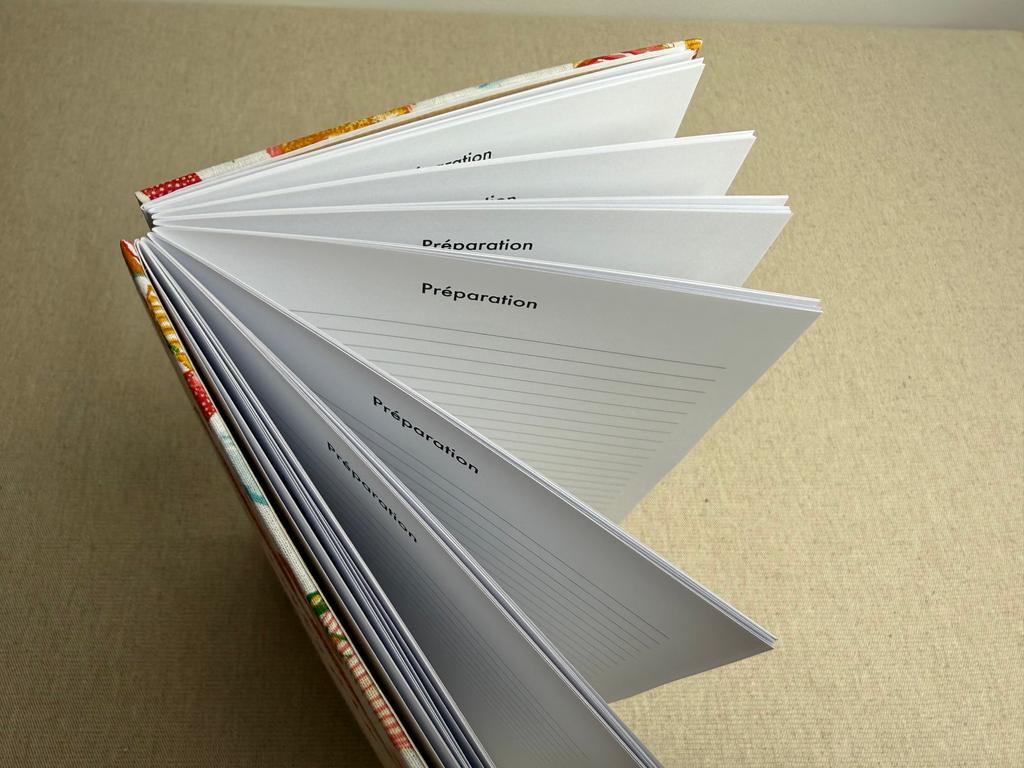 Carnet artisanal avec un beau papier à lignes, 120 g/m2, papier lisse pour faciliter l’écriture, de couleur blanc chaud.