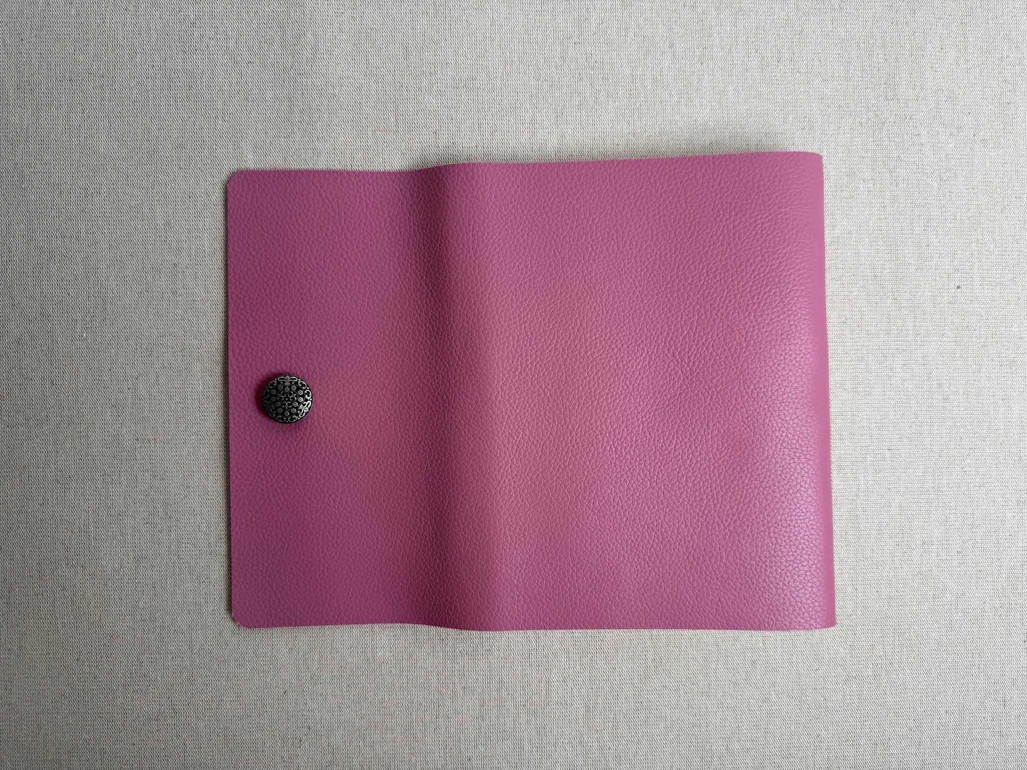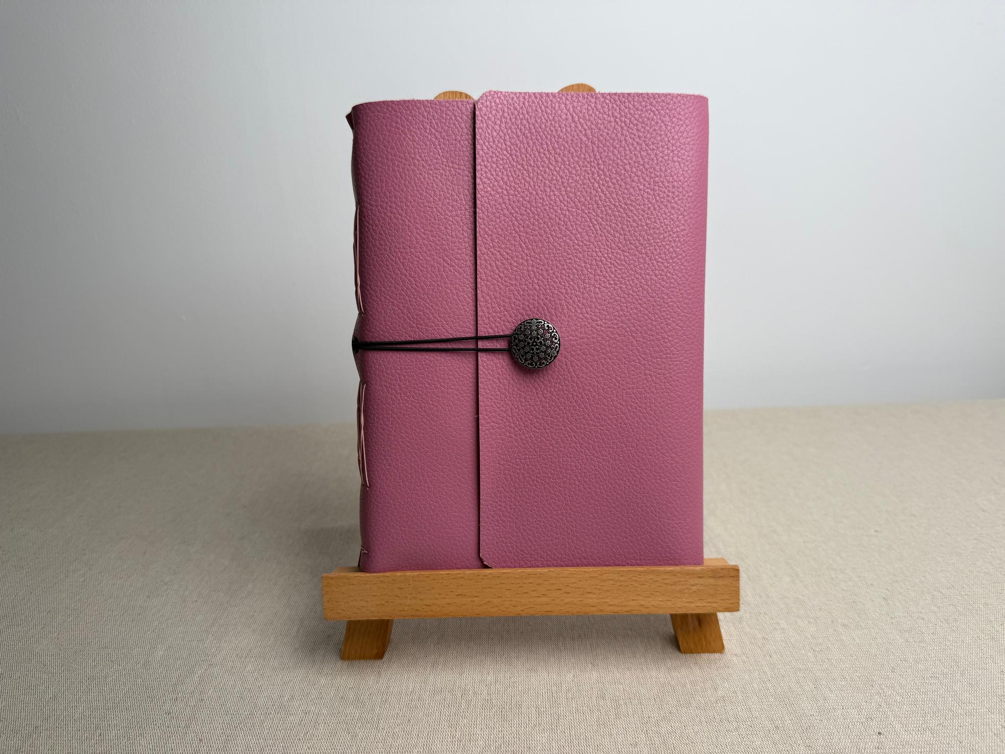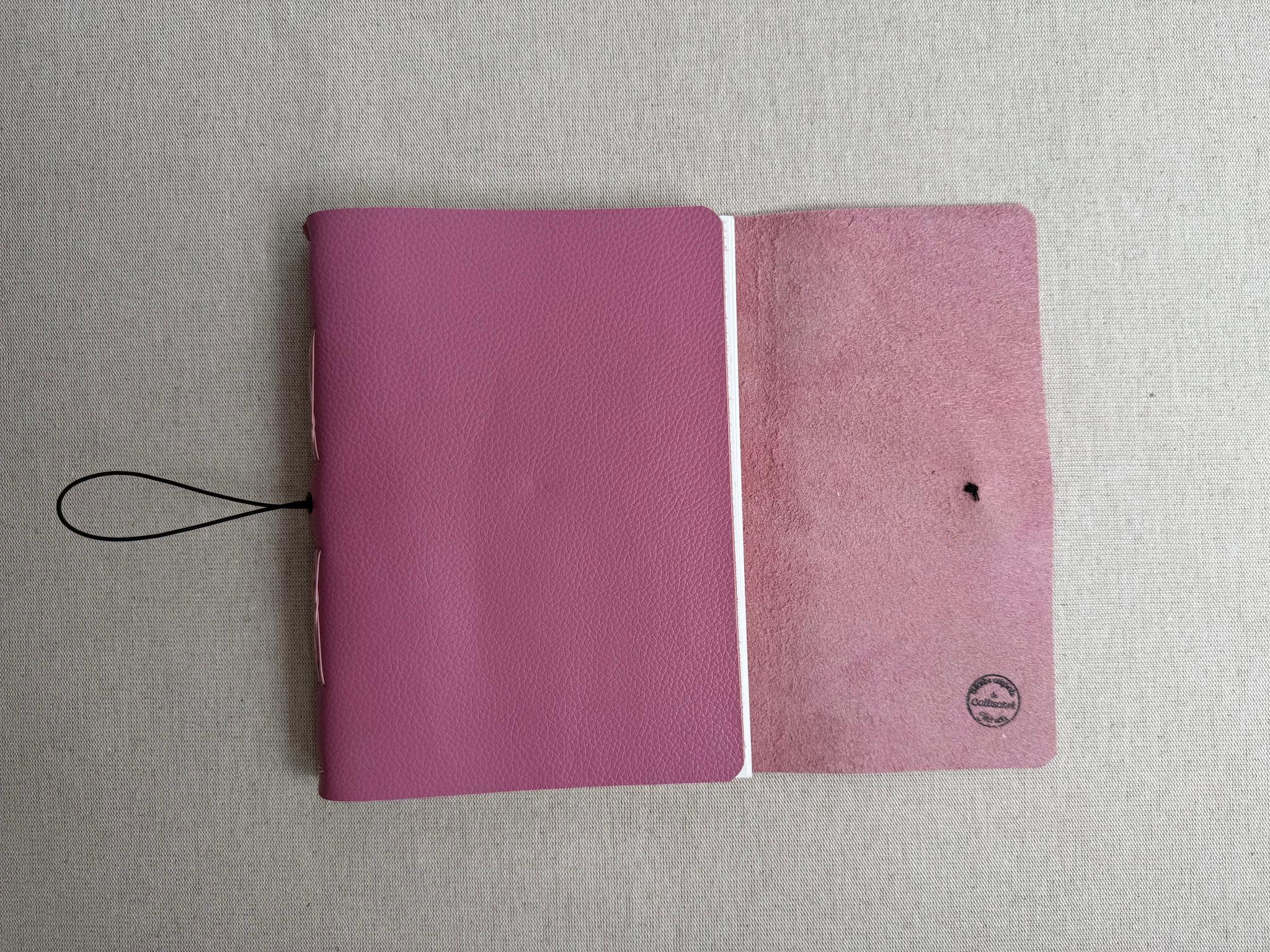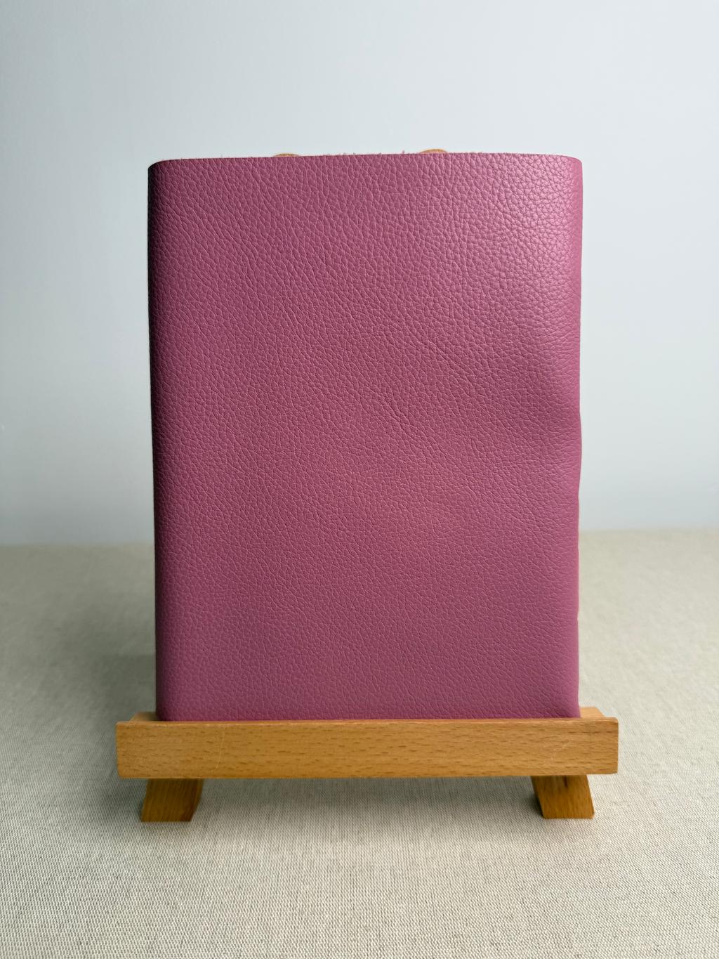 Couverture en cuir légèrement grainé de très belle qualité. Je sélectionne ces cuirs chez un fournisseur à côté de chez moi.