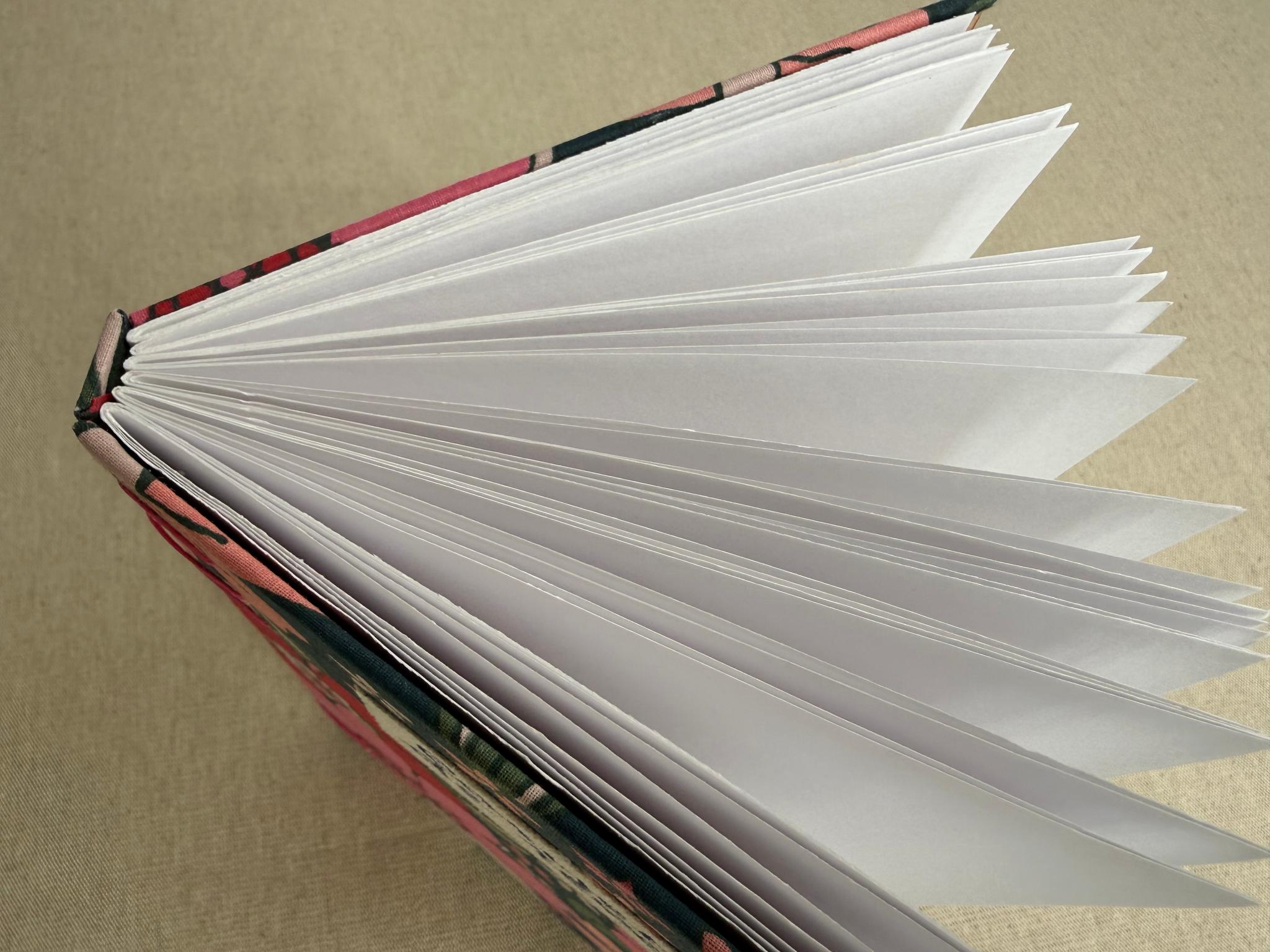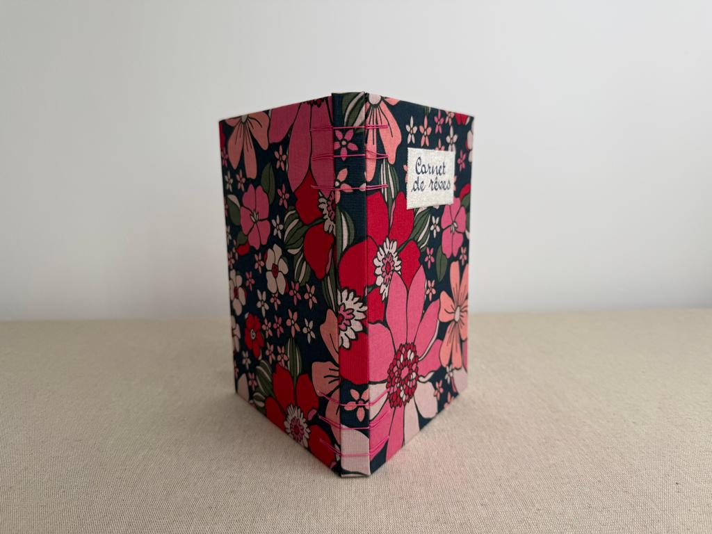 Reliure artisanale cousue avec du fil en lin utilisé traditionnellement pour la reliure, très résistant. Chaque carnet est un exemplaire unique.