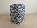 Cet article est unique, il a été fabriqué à la main par mes propres soins dans mon atelier de la région lyonnaise. Je fabrique habituellement par séries d’une dizaine d’articles du même type (même forme, même dimensions), mais aucun n’est identique : tous ont quelque chose de différent, que ce soit au niveau des couleurs, du texte calligraphié ou même de l’orientation des tissus. C’est pour cela que mes articles vendus en ligne sont numérotés. En savoir plus