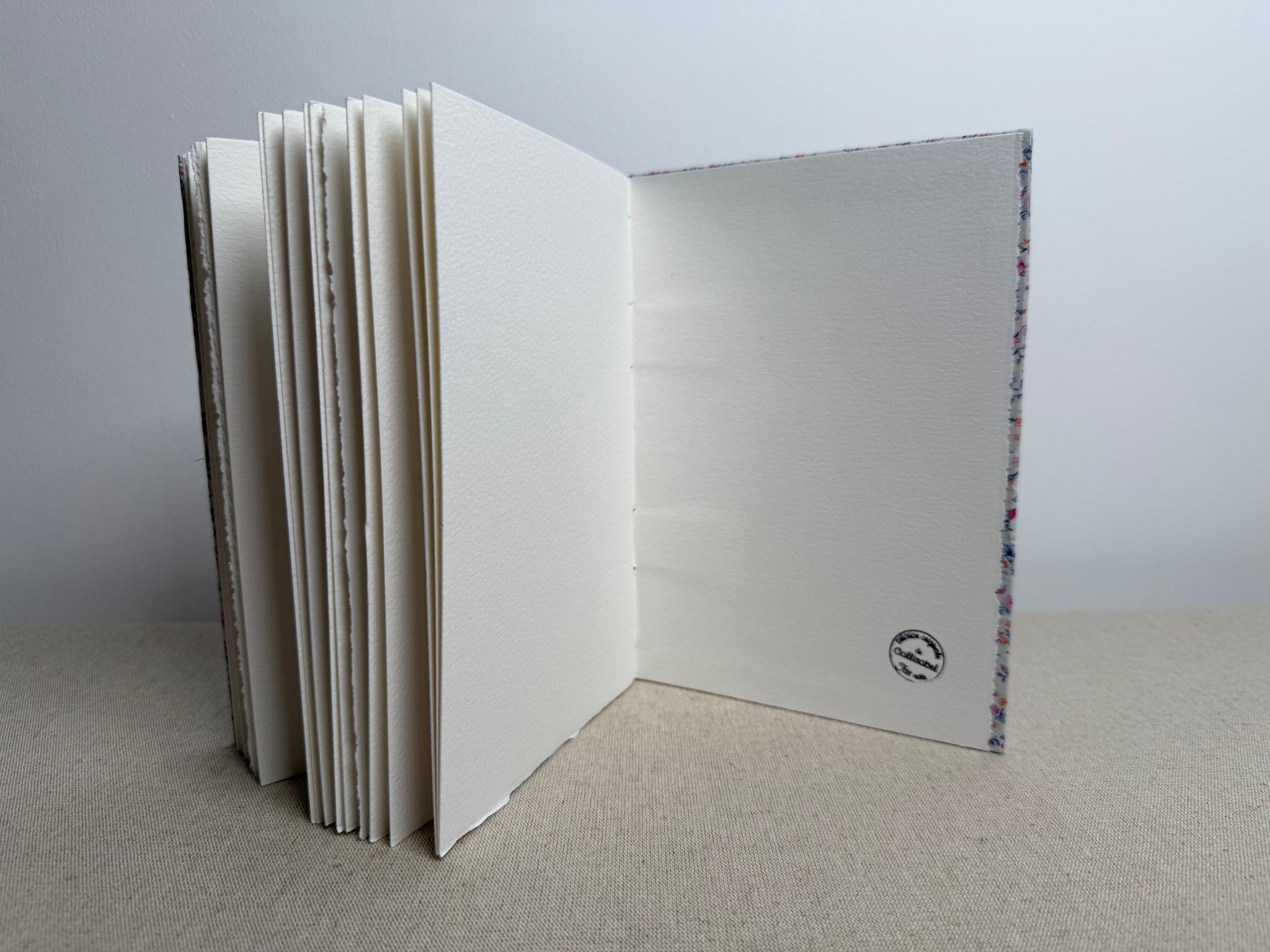 Carnet artisanal avec un papier aquarelle d’excellente qualité 300 g/m2, 100 % coton. Ce papier à grain fin haut de gamme est idéal pour la peinture aquarelle mais il est aussi adapté pour les lavis, la gouache, l’acylique et l’encre.