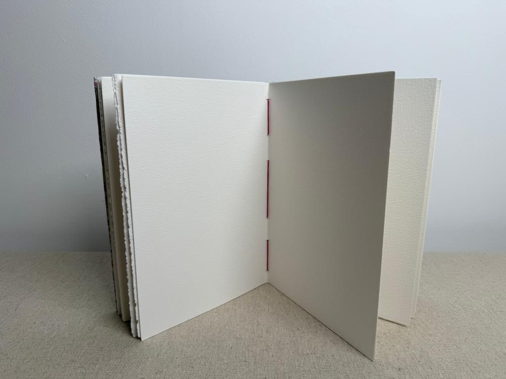 Reliure artisanale cousue avec du fil en lin utilisé traditionnellement pour la reliure, très résistant. Chaque carnet est un exemplaire unique.