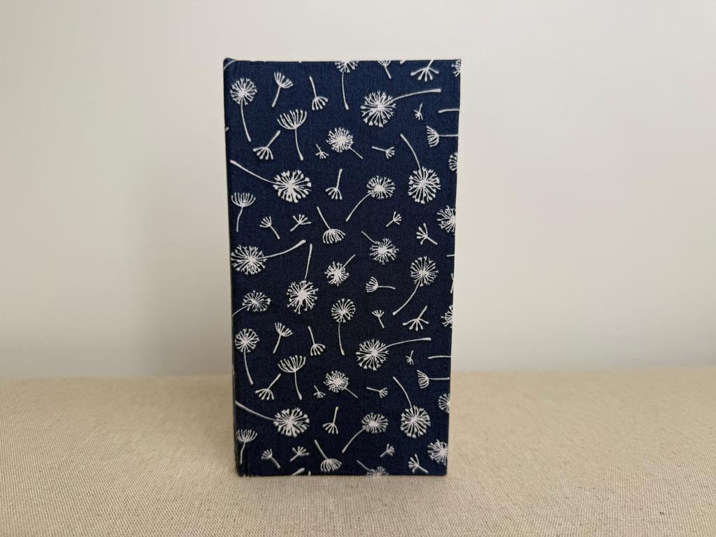 Couverture en carton recyclé rigide recouverte d’un tissu imprimé en coton