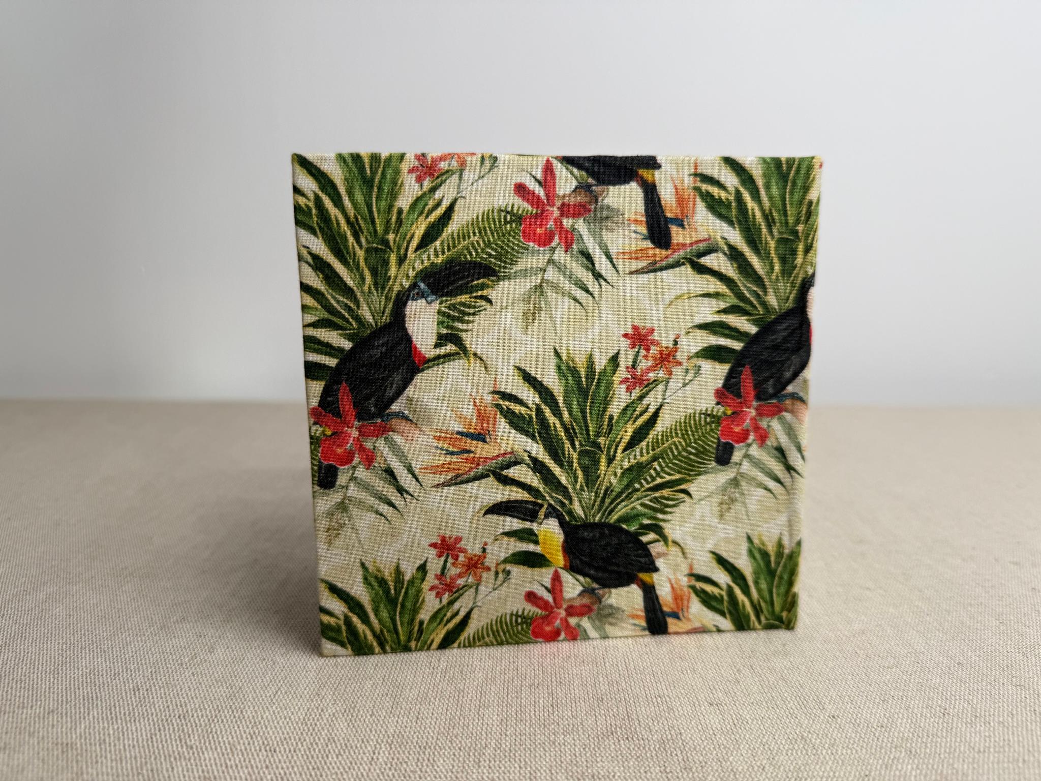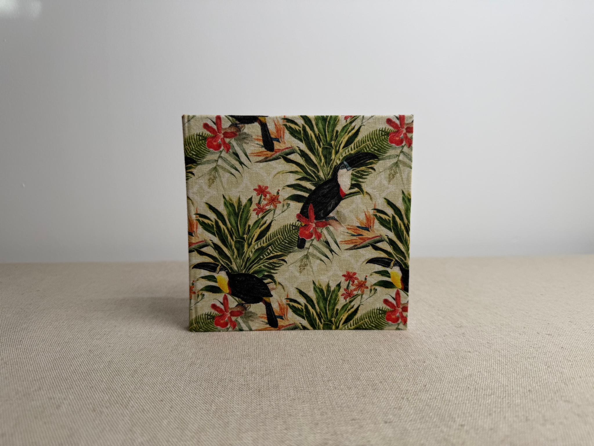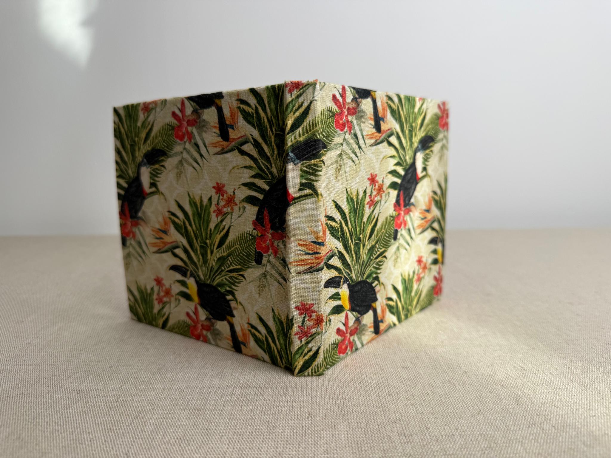 Couverture en carton recyclé rigide recouverte d’un tissu imprimé en coton