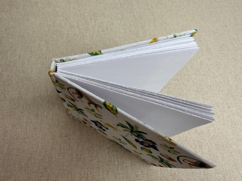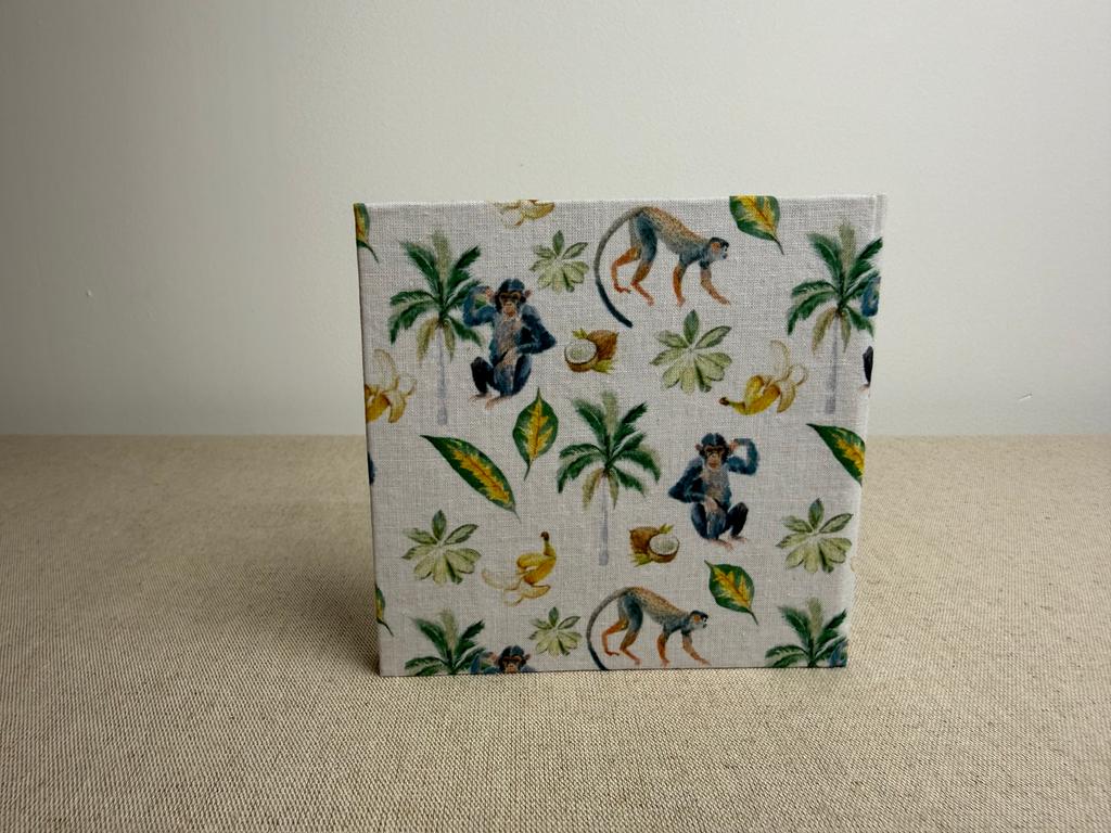 Couverture en carton recyclé rigide recouverte d’un tissu imprimé en coton