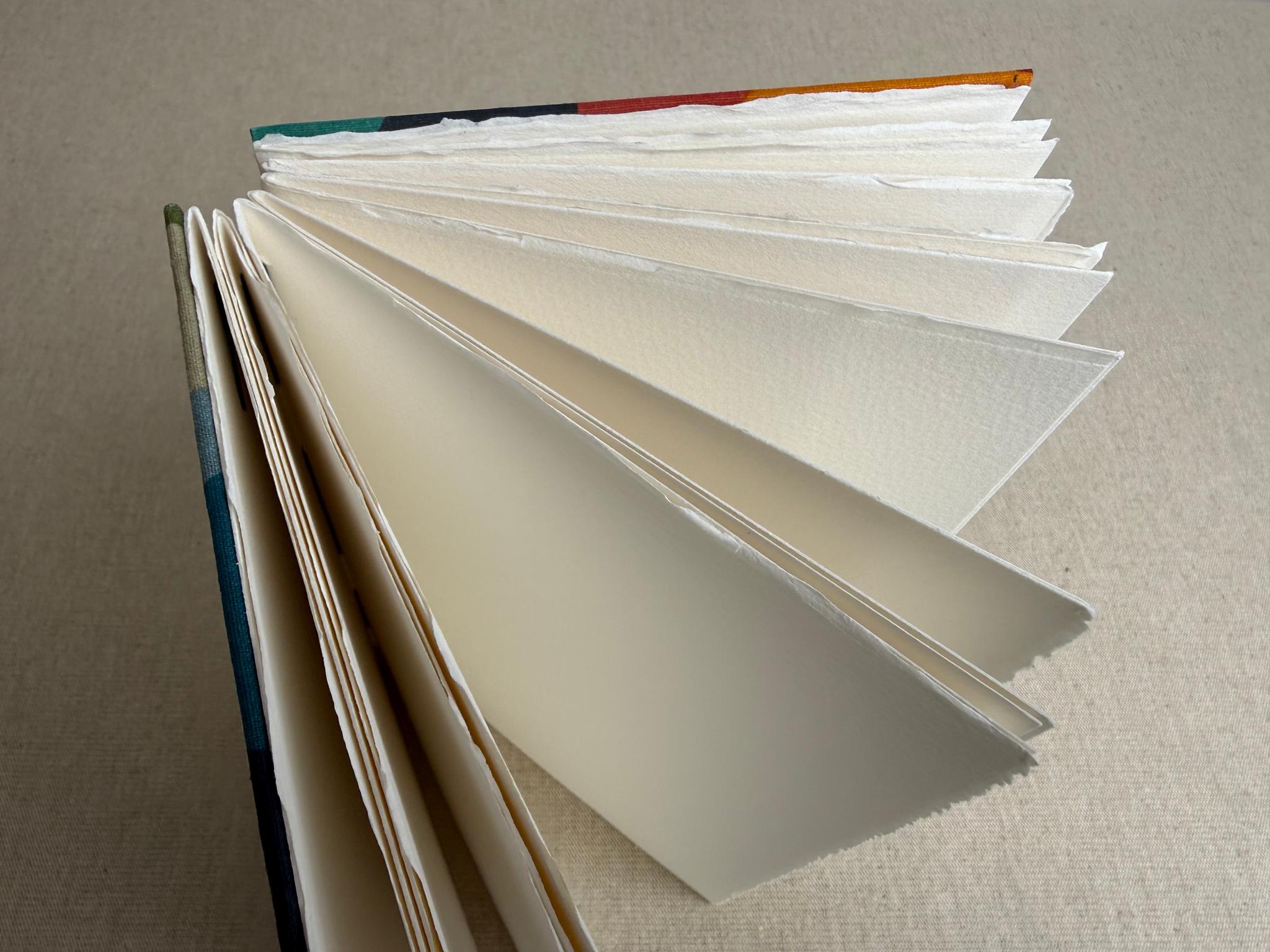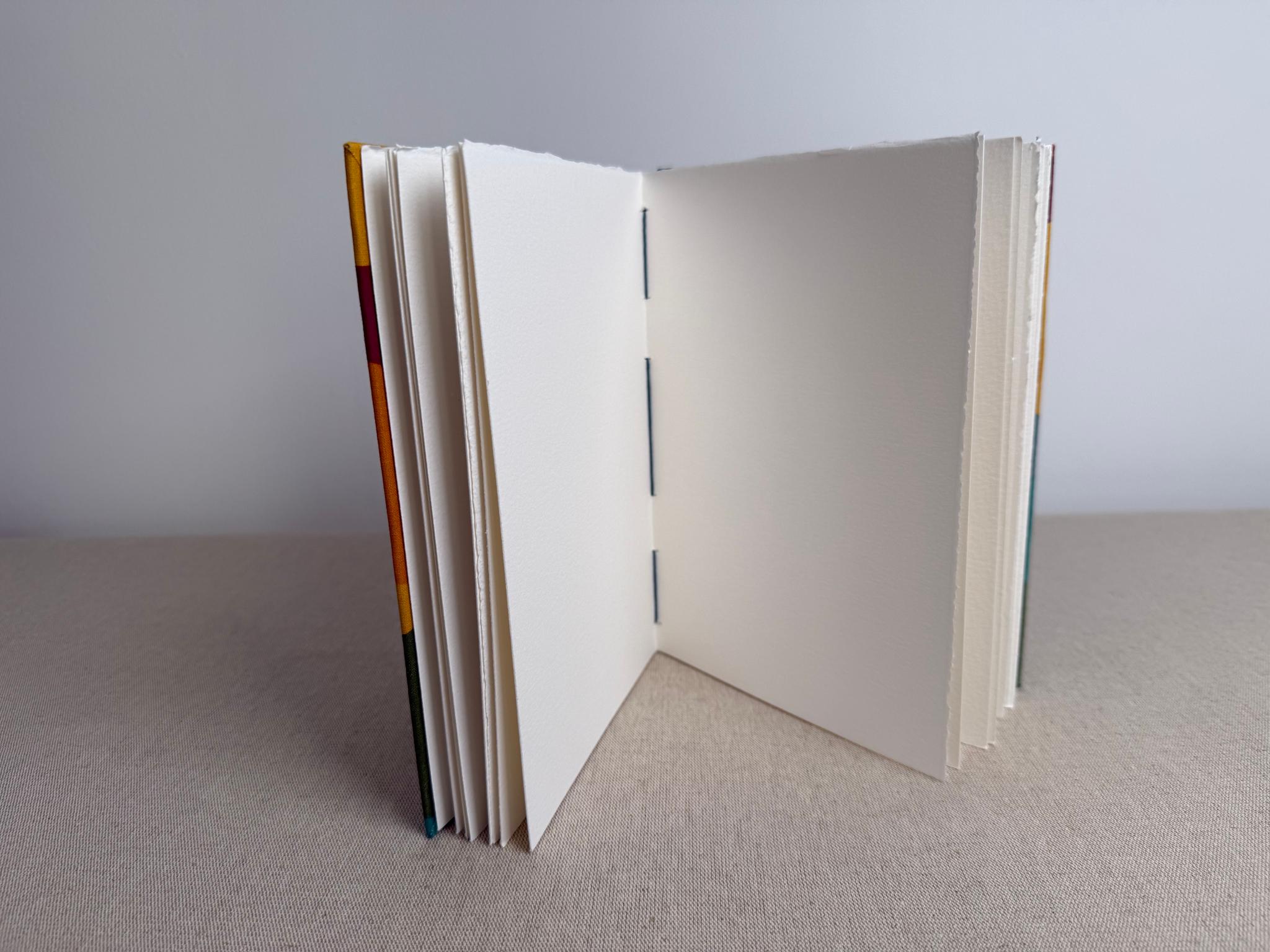 Reliure artisanale cousue avec du fil en lin utilisé traditionnellement pour la reliure, très résistant. Chaque carnet est un exemplaire unique.