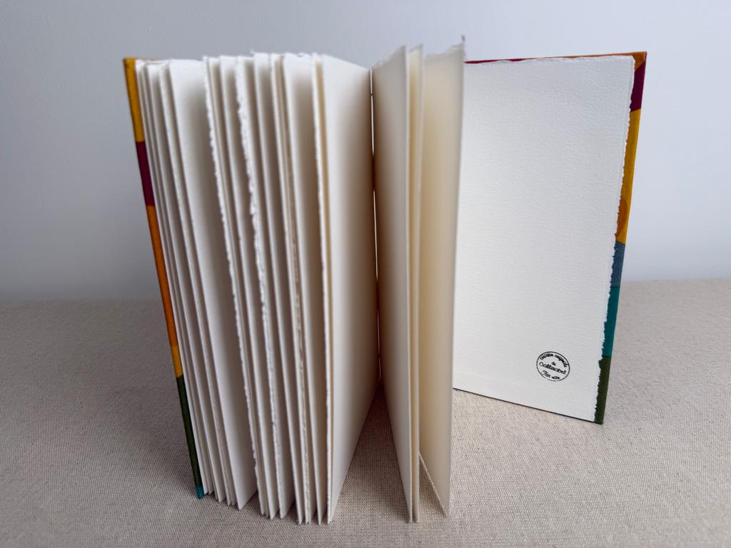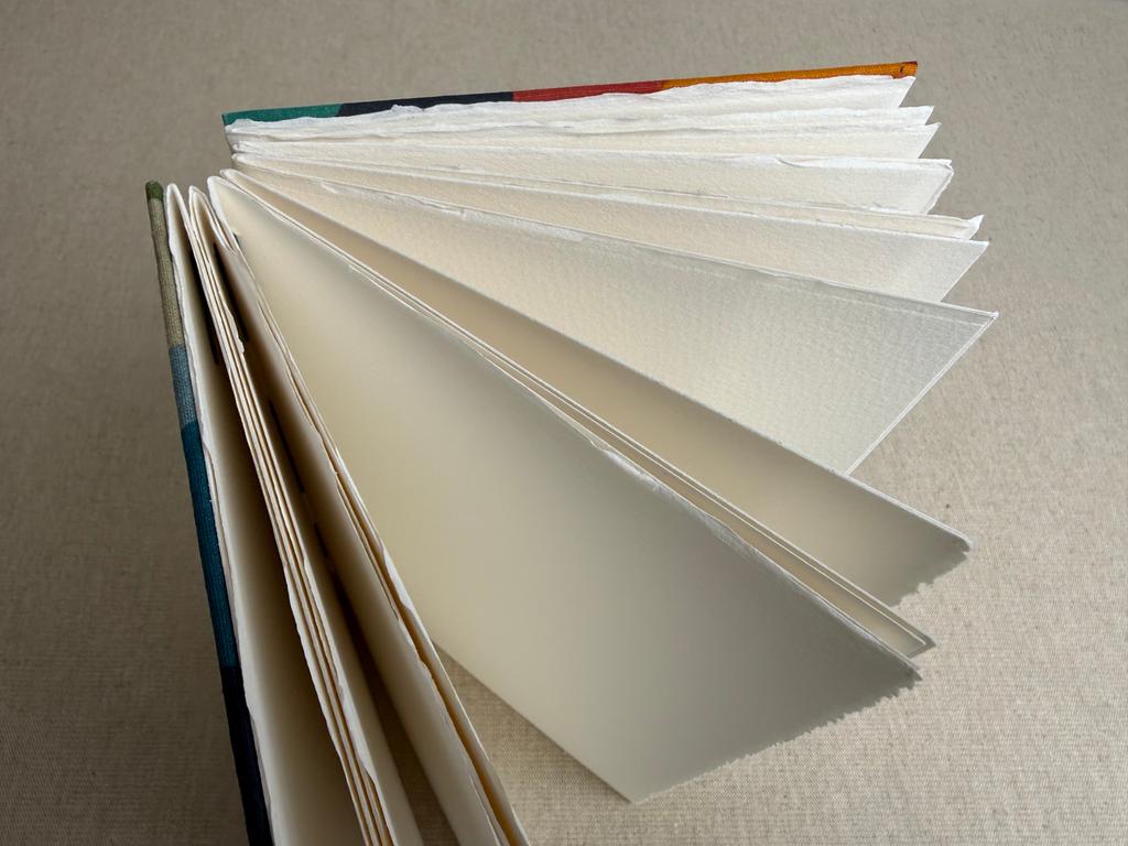 Carnet artisanal avec un papier aquarelle d’excellente qualité 300 g/m2, 100 % coton. Ce papier à grain fin haut de gamme est idéal pour la peinture aquarelle mais il est aussi adapté pour les lavis, la gouache, l’acylique et l’encre.