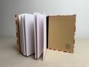 Chaque carnet est soigneusement emballé dans un papier de soie blanc avec une étiquette de présentation du carnet et une carte de remerciement. Sur demande, emballage cadeau offert en papier kraft marron avec un motif à pois blancs.