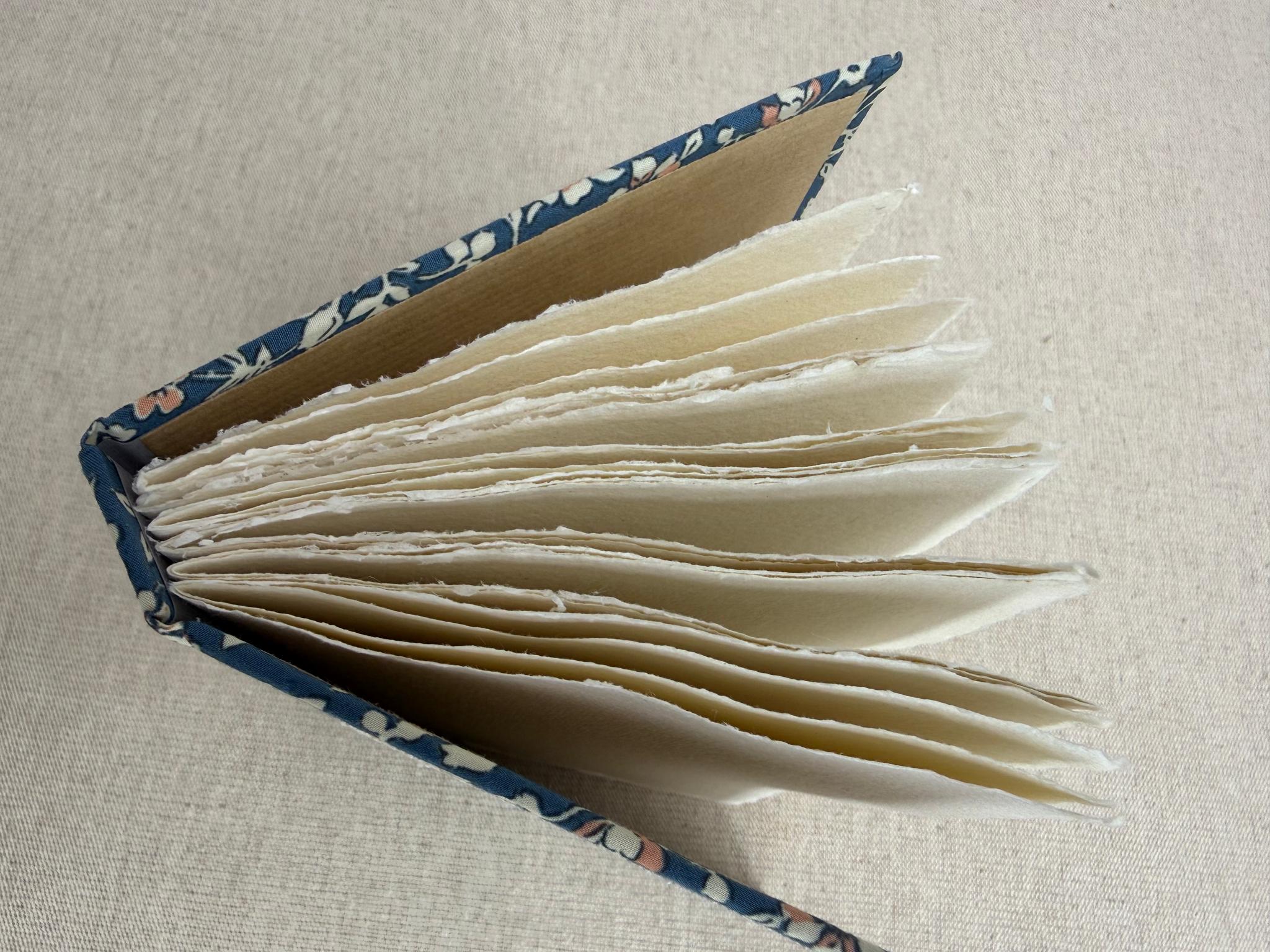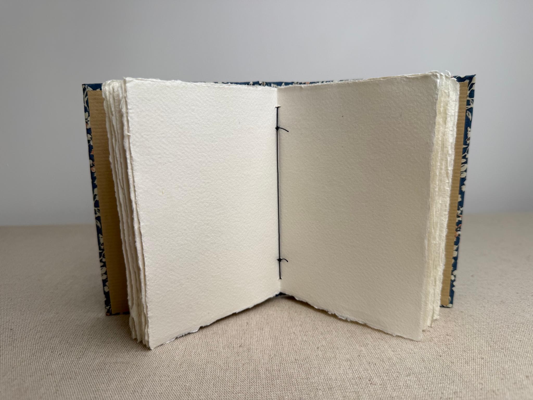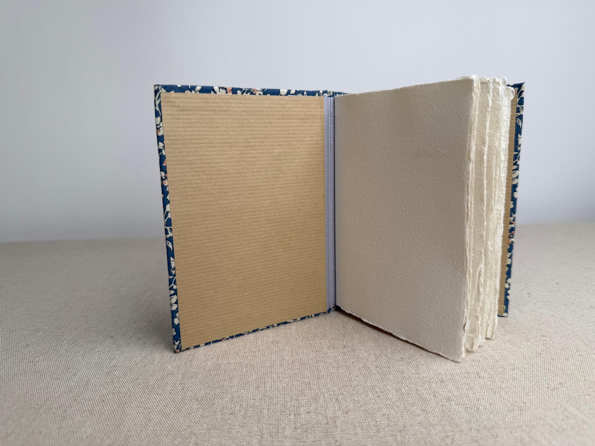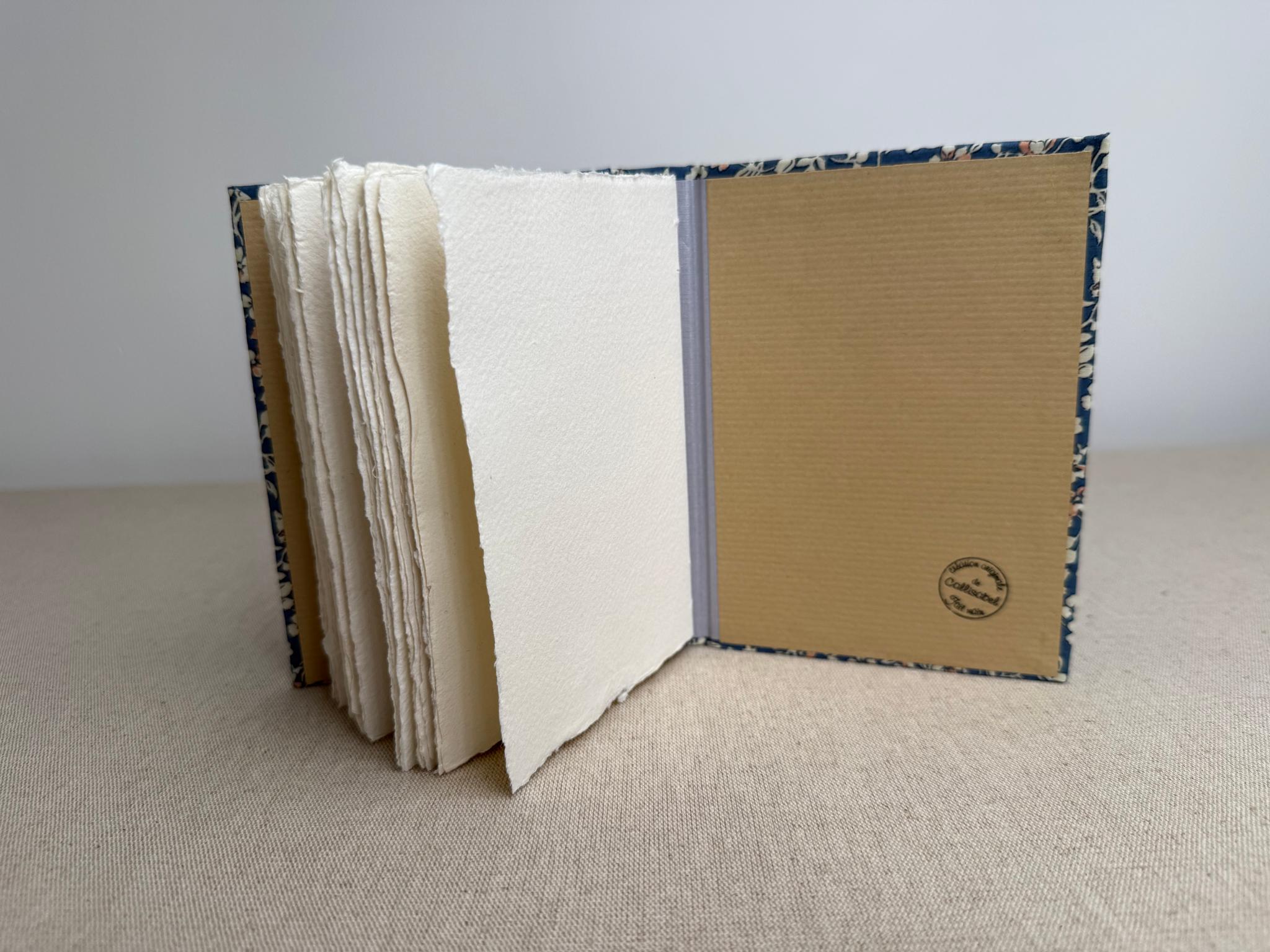 Reliure artisanale cousue avec du fil en lin utilisé traditionnellement pour la reliure, très résistant. Chaque carnet est un exemplaire unique.