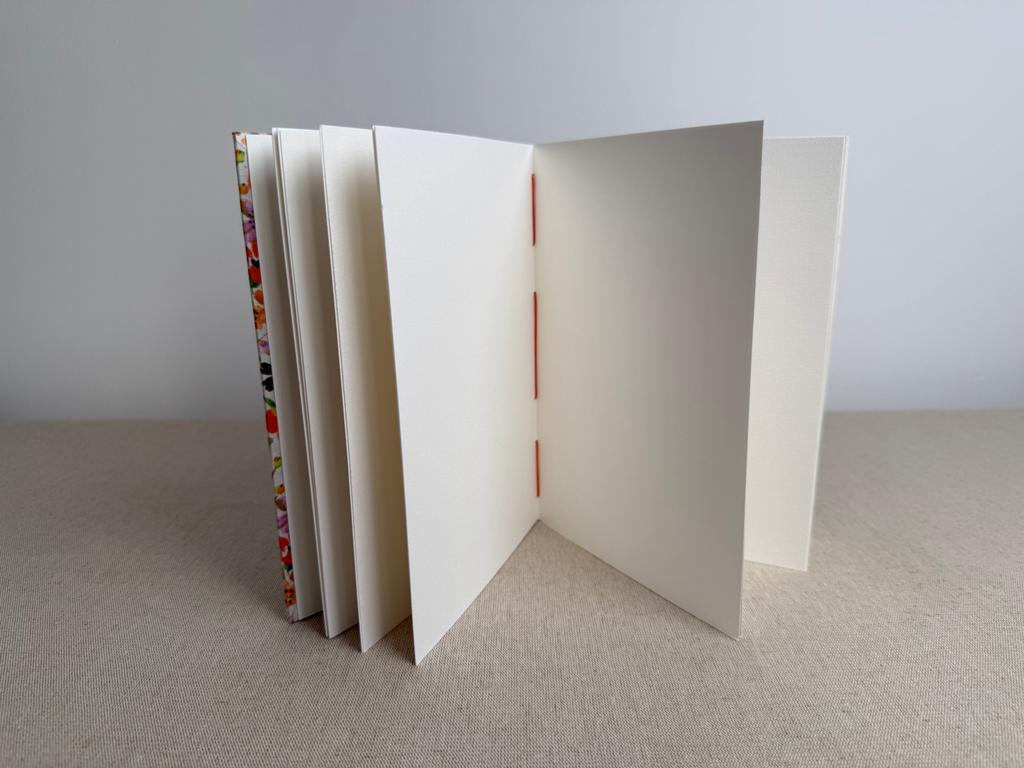 Reliure artisanale cousue avec du fil en lin utilisé traditionnellement pour la reliure, très résistant. Chaque carnet est un exemplaire unique.
