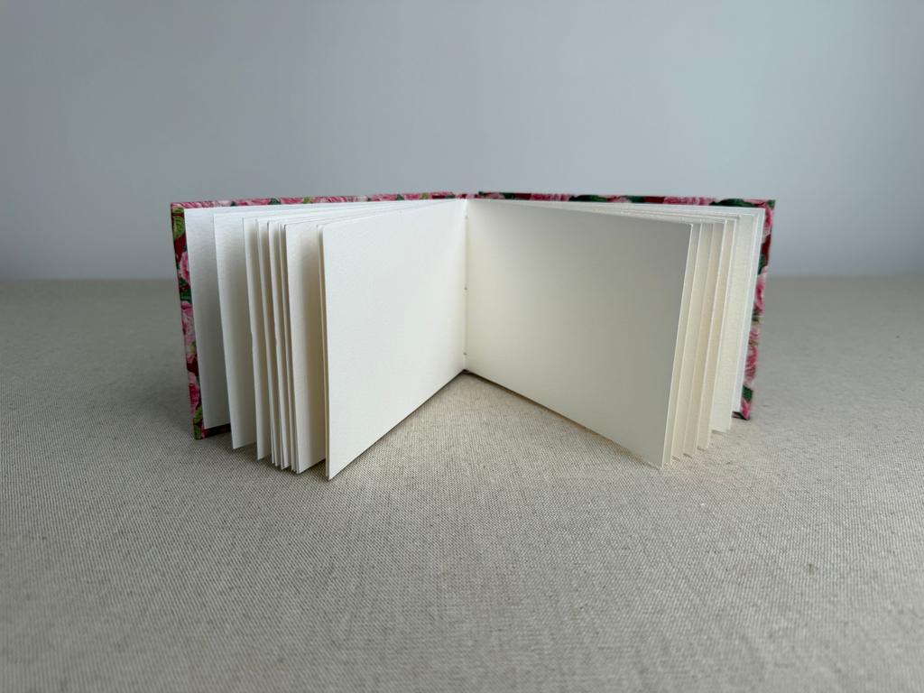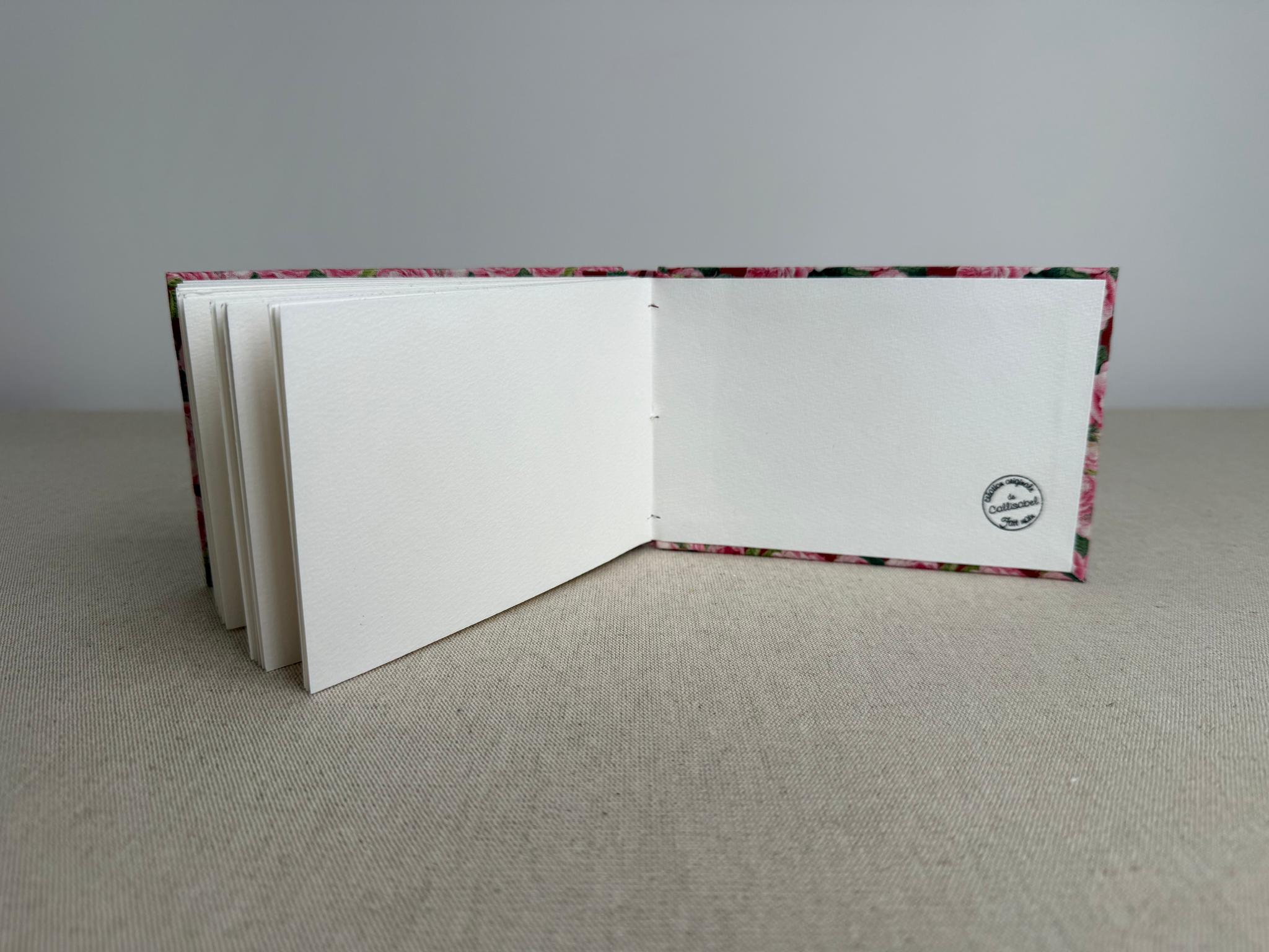 Carnet artisanal avec un très beau papier aquarelle épais de 225 g/m2, contenant 10 % de coton, avec une légère surface granuleuse. Les couleurs y adhérent parfaitement, même les tons doux, avec une dispersion légère.