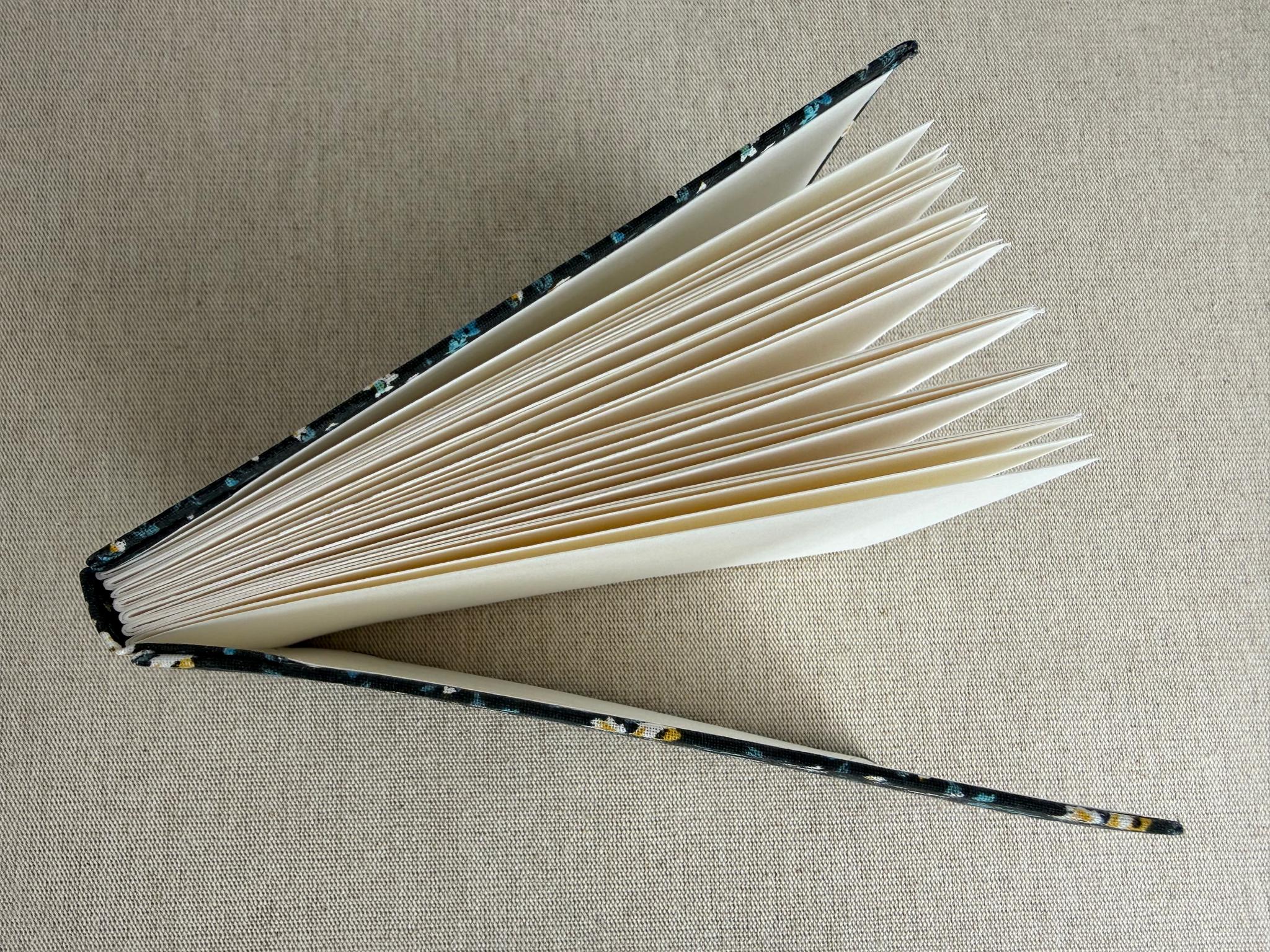 Reliure artisanale cousue avec du fil en lin utilisé traditionnellement pour la reliure, très résistant. Chaque carnet est un exemplaire unique.
