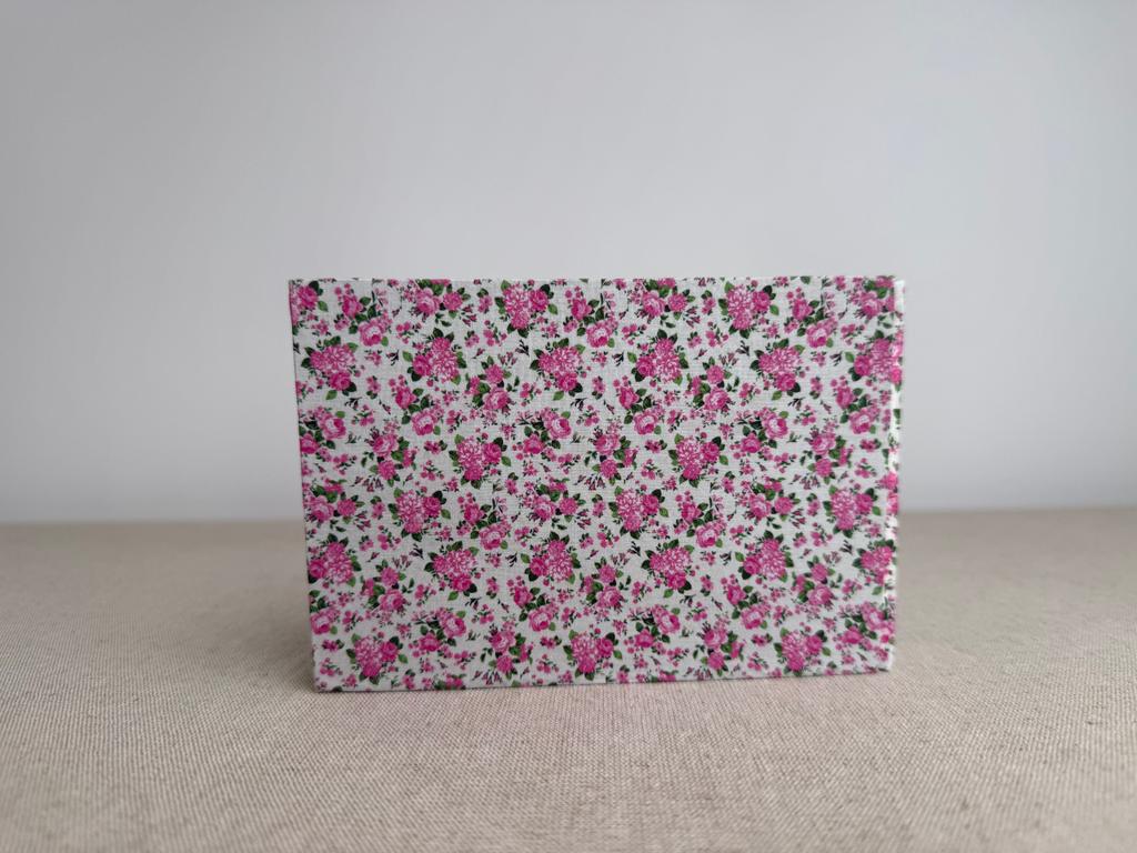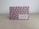 Chaque carnet est soigneusement emballé dans un papier de soie blanc avec une étiquette de présentation du carnet et une carte de remerciement. Sur demande, emballage cadeau offert en papier kraft marron avec un motif à pois blancs.