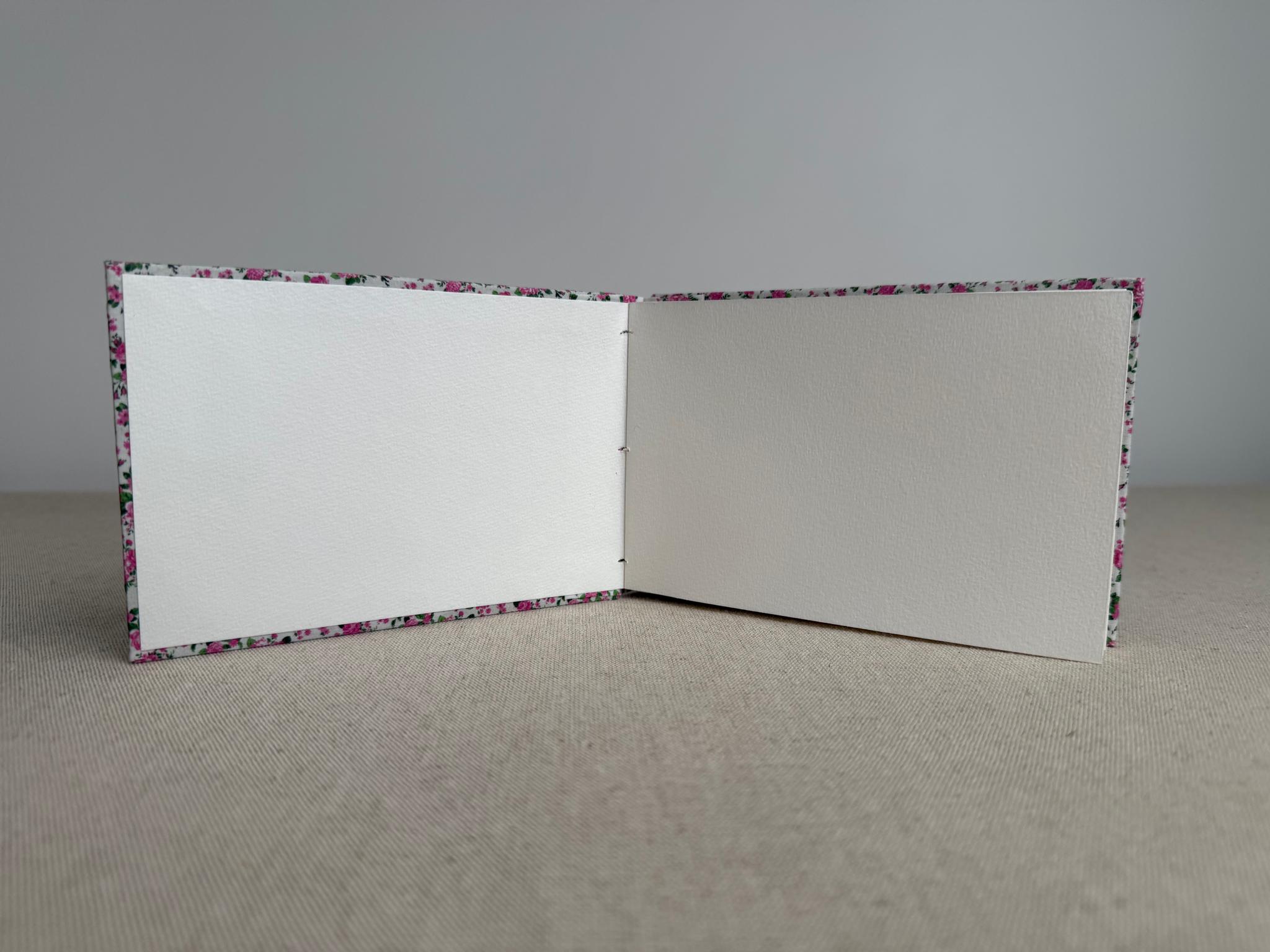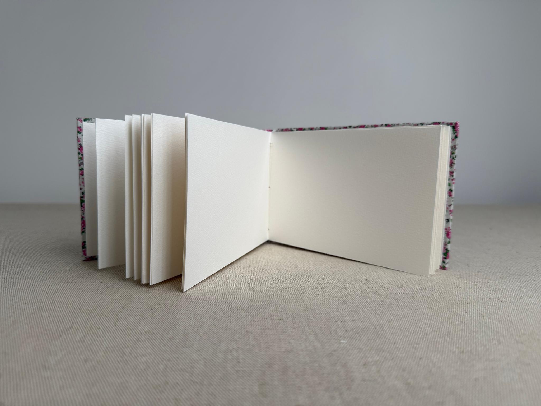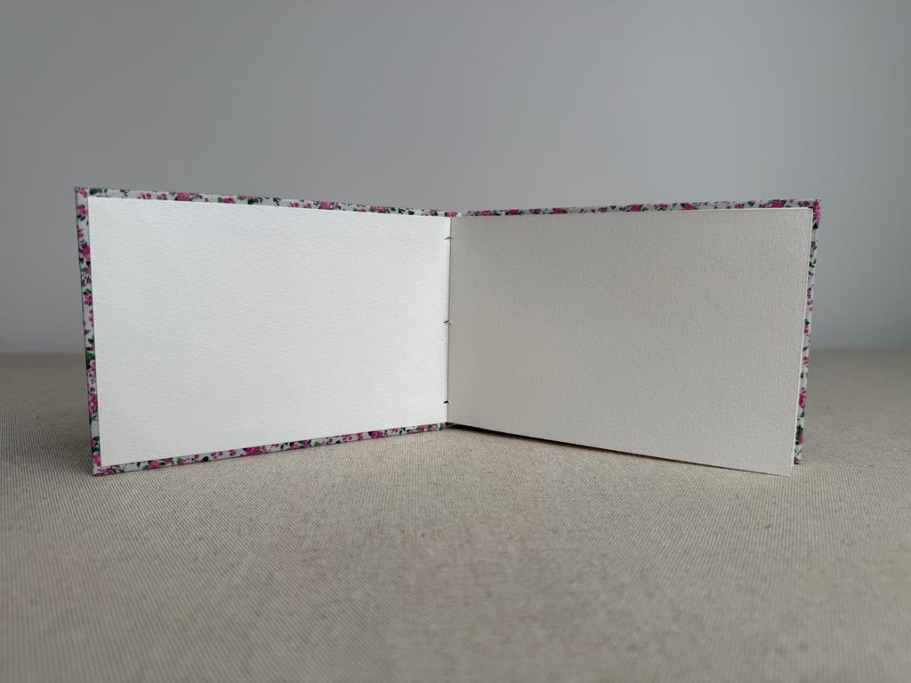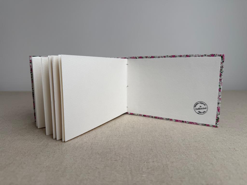 Carnet artisanal avec un très beau papier aquarelle épais de 225 g/m2, contenant 10 % de coton, avec une légère surface granuleuse. Les couleurs y adhérent parfaitement, même les tons doux, avec une dispersion légère.