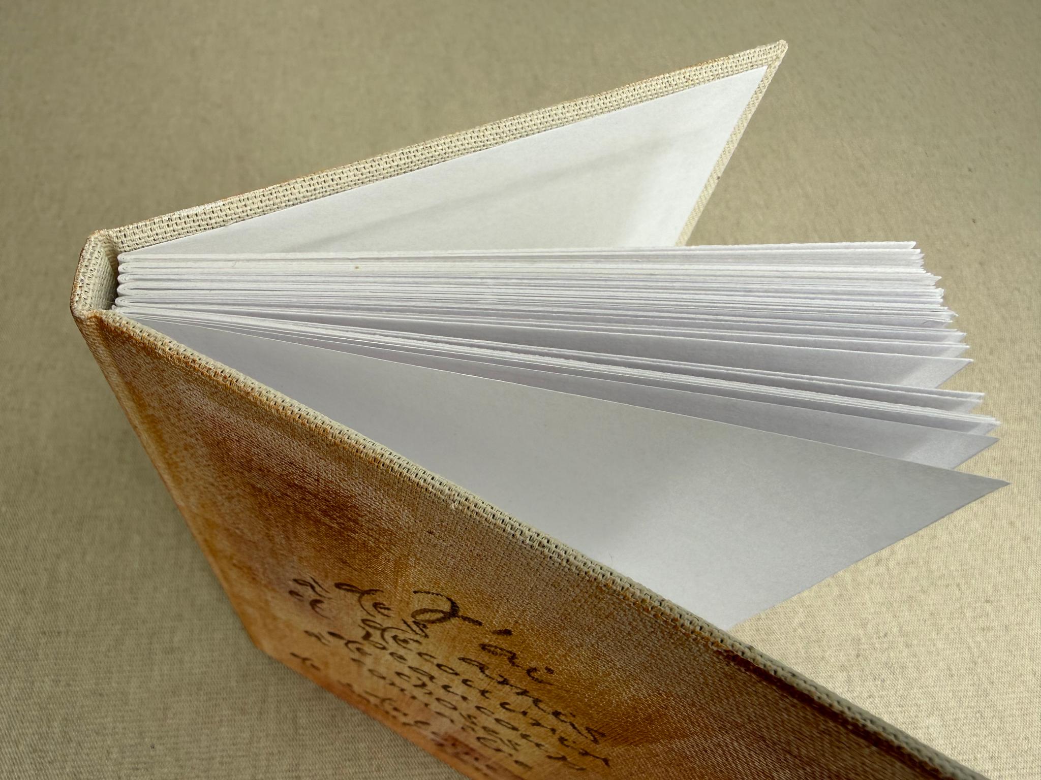 Reliure artisanale cousue avec du fil en lin utilisé traditionnellement pour la reliure, très résistant. Chaque carnet est un exemplaire unique.