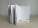 Chaque carnet est soigneusement emballé dans un papier de soie blanc avec une étiquette de présentation du carnet et une carte de remerciement. Sur demande, emballage cadeau offert en papier kraft marron avec un motif à pois blancs.