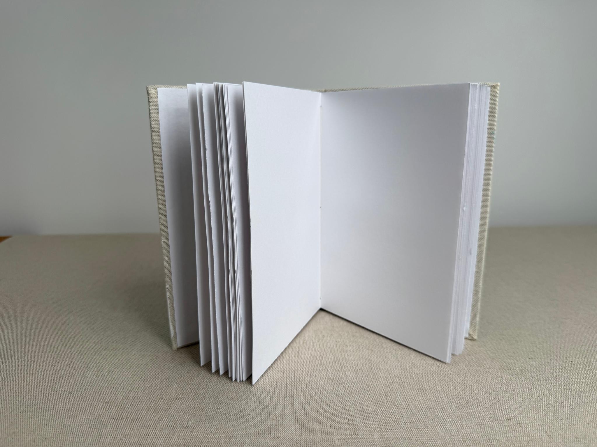 Carnet artisanal contenant du papier à dessin blanc Clairefontaine 120 /m2 au grain fin. Il est idéal pour le dessin et le croquis mais aussi adapté aux techniques sèches (crayons, feutres, fusain, craies…). Il convient également à la technique de l’aquarelle notamment pour des croquis légèrement aquarellés.