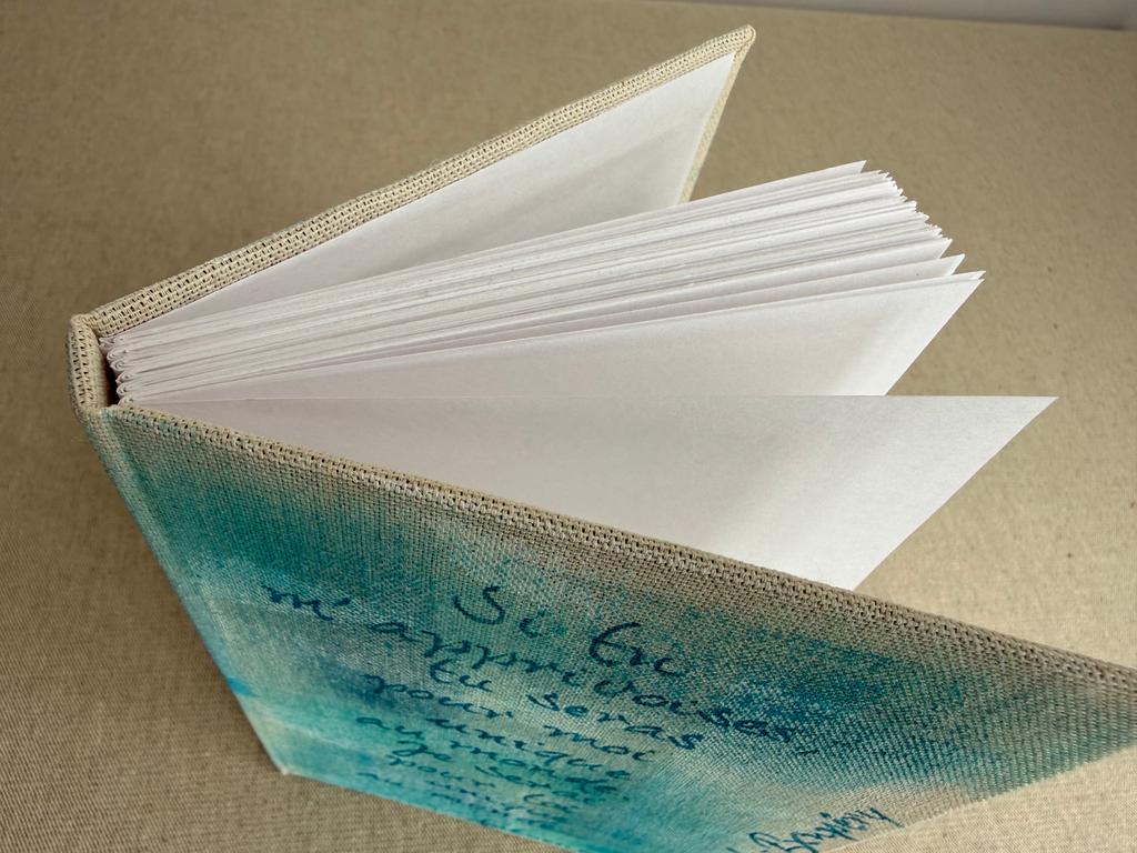 Reliure artisanale cousue avec du fil en lin utilisé traditionnellement pour la reliure, très résistant. Chaque carnet est un exemplaire unique.