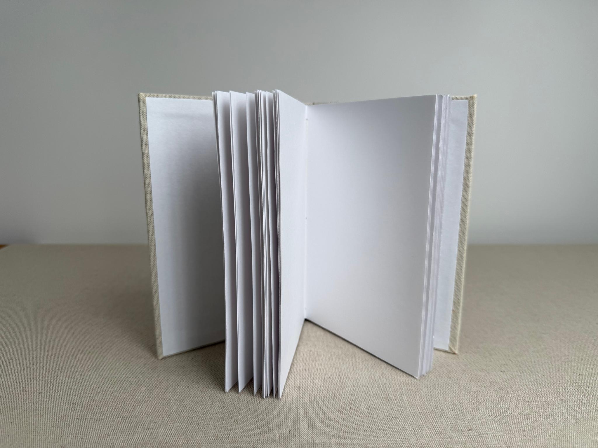 Carnet artisanal contenant du papier à dessin blanc Clairefontaine 120 /m2 au grain fin. Il est idéal pour le dessin et le croquis mais aussi adapté aux techniques sèches (crayons, feutres, fusain, craies…). Il convient également à la technique de l’aquarelle notamment pour des croquis légèrement aquarellés.