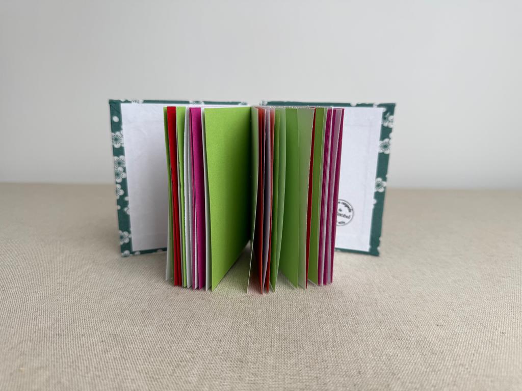 Carnet artisanal contenant du papier à dessin blanc et en couleur, de 120 à 160 g/m2.
