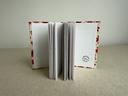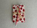 Chaque carnet est soigneusement emballé dans un papier de soie blanc avec une étiquette de présentation du carnet et une carte de remerciement. Sur demande, emballage cadeau offert en papier kraft marron avec un motif à pois blancs.